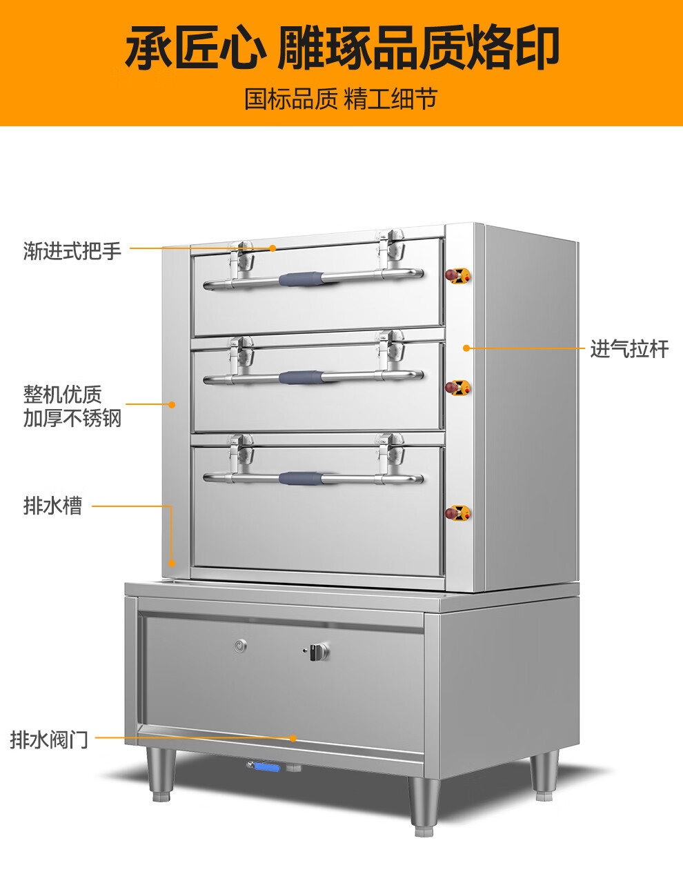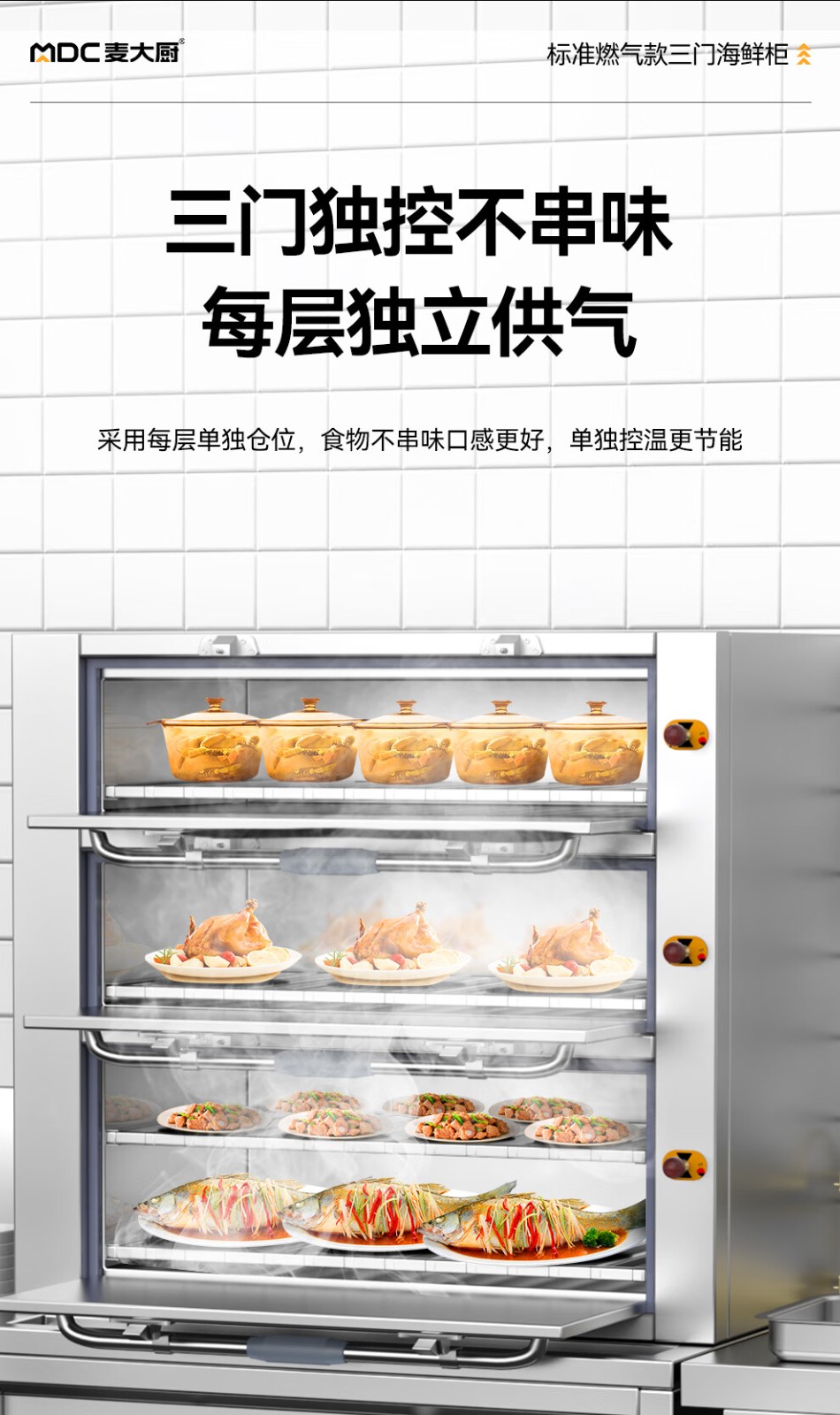 麥大廚商用蒸柜1000mm標準燃氣款三門海鮮蒸柜