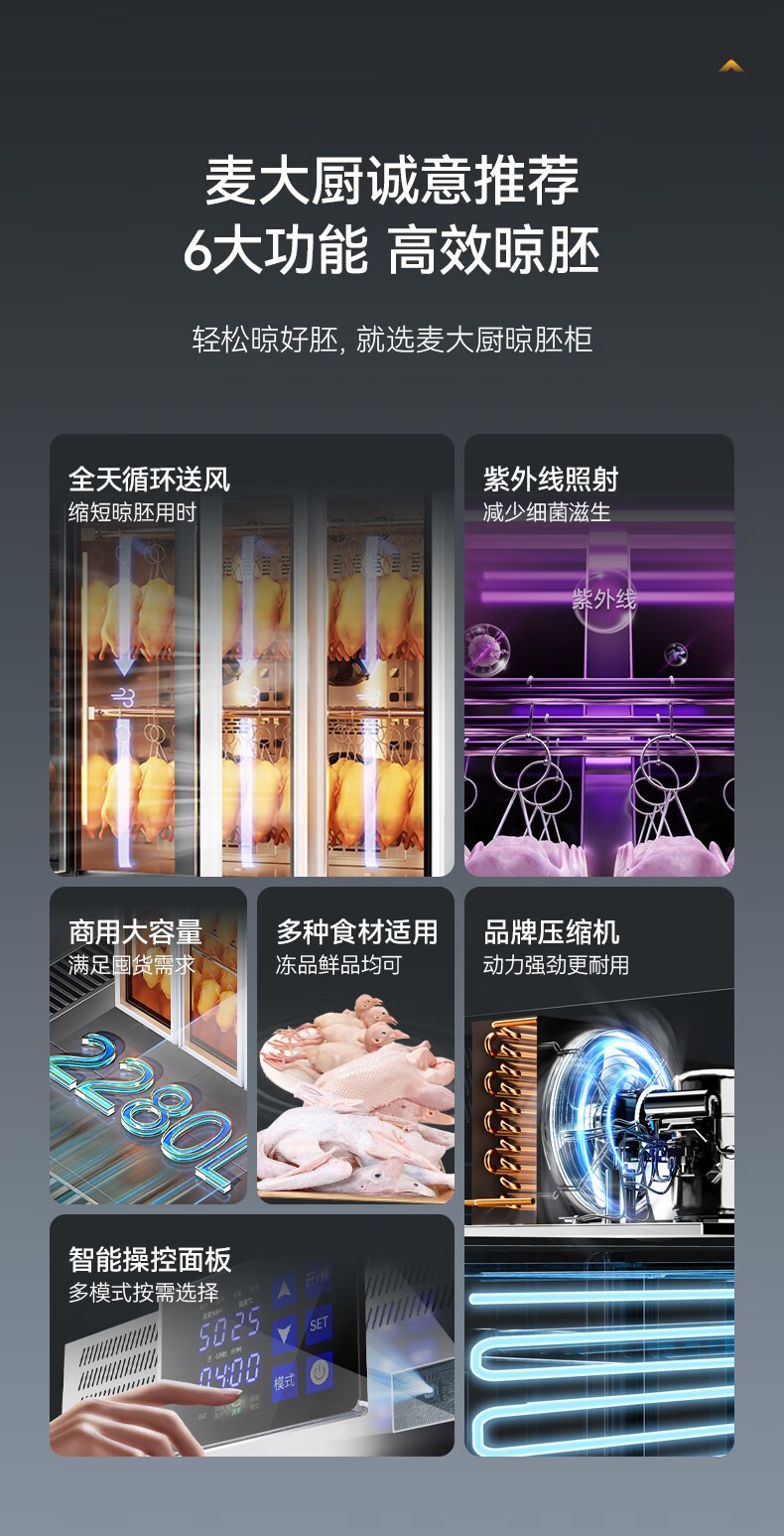 麥大廚旗艦款三門商用晾胚柜晾鴨風干柜
