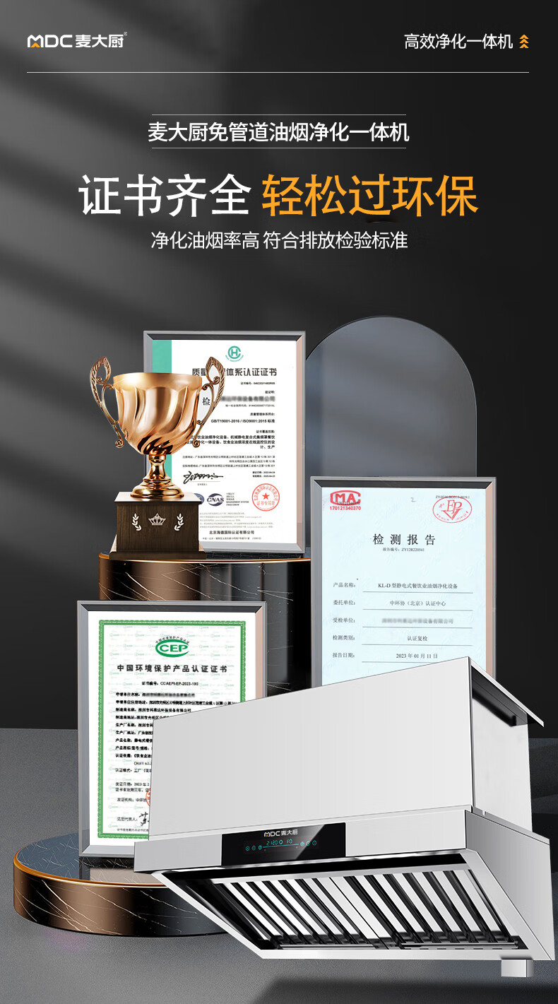麥大廚1.6米輕油煙內循環凈化一體機(無電場)
