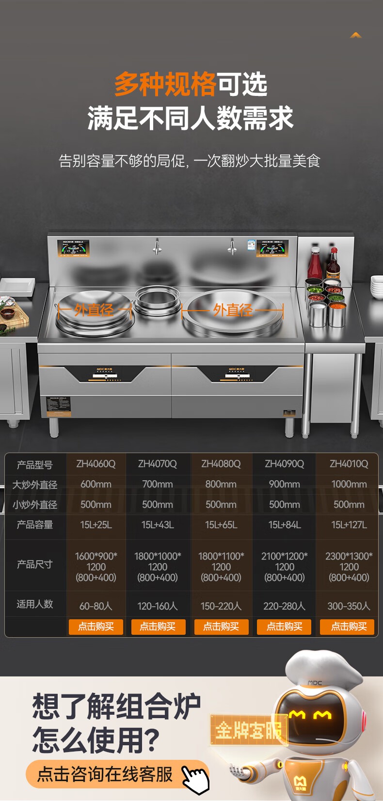 - 更多MDC商用大小組合爐規格咨詢在線客服