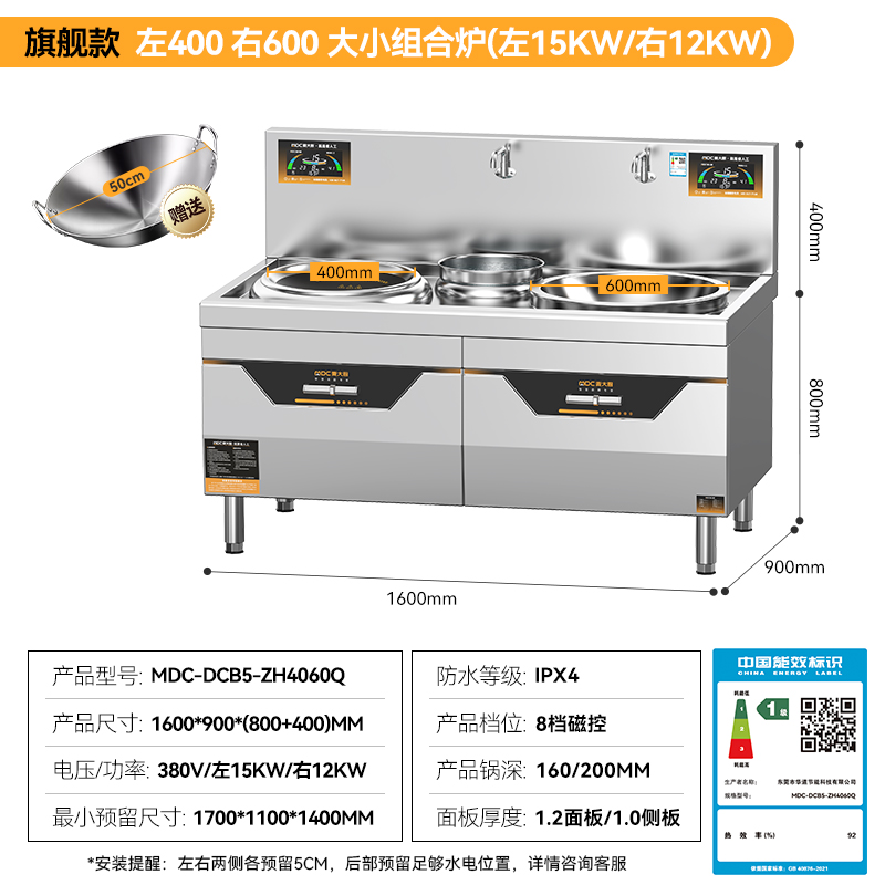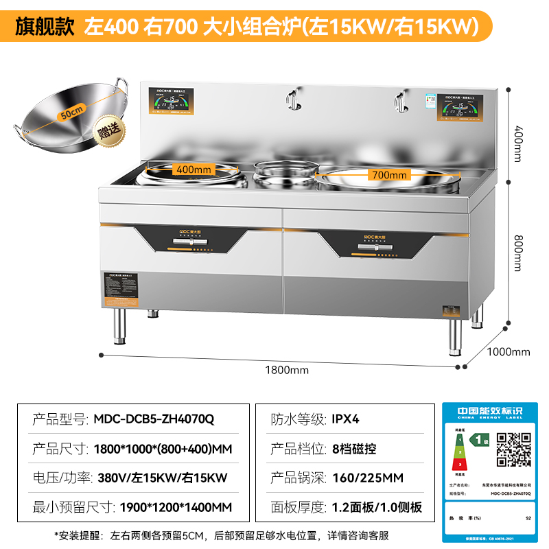 麥大廚旗艦款左400右800大小組合爐商用