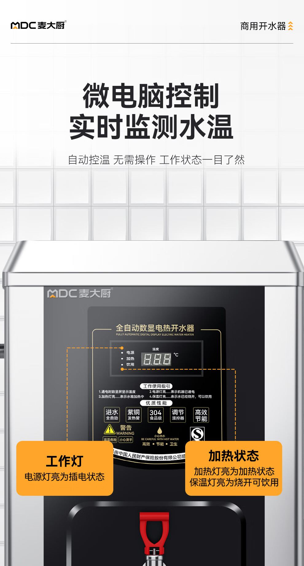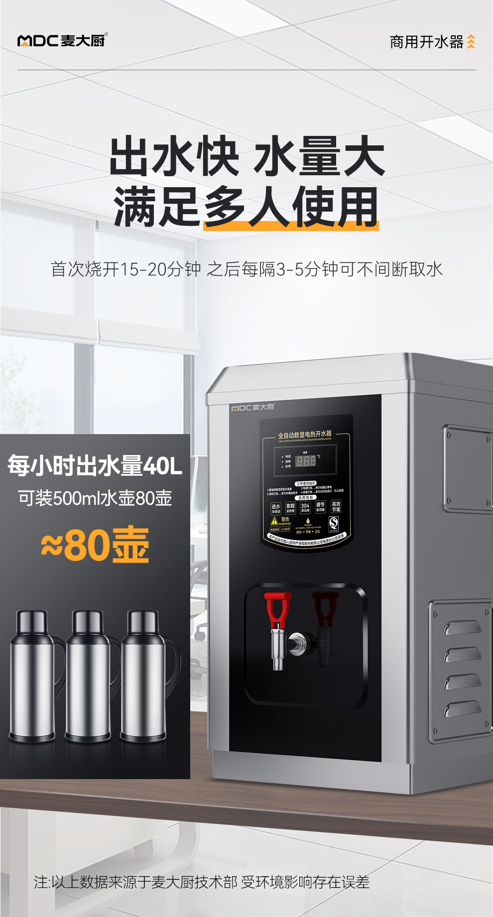 麥大廚黑鈦鋼數顯升級款速熱開水器商用60-90L