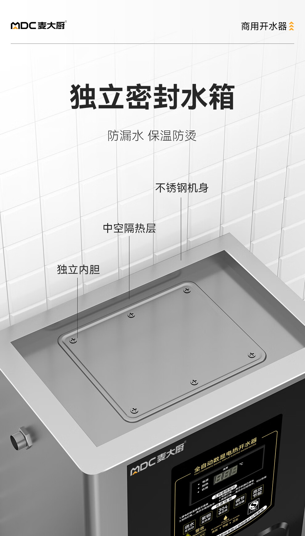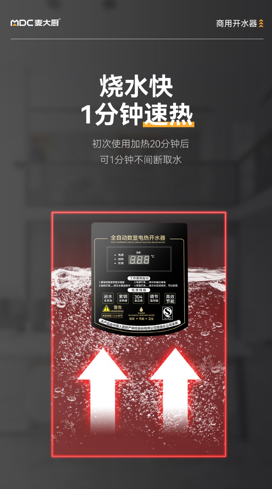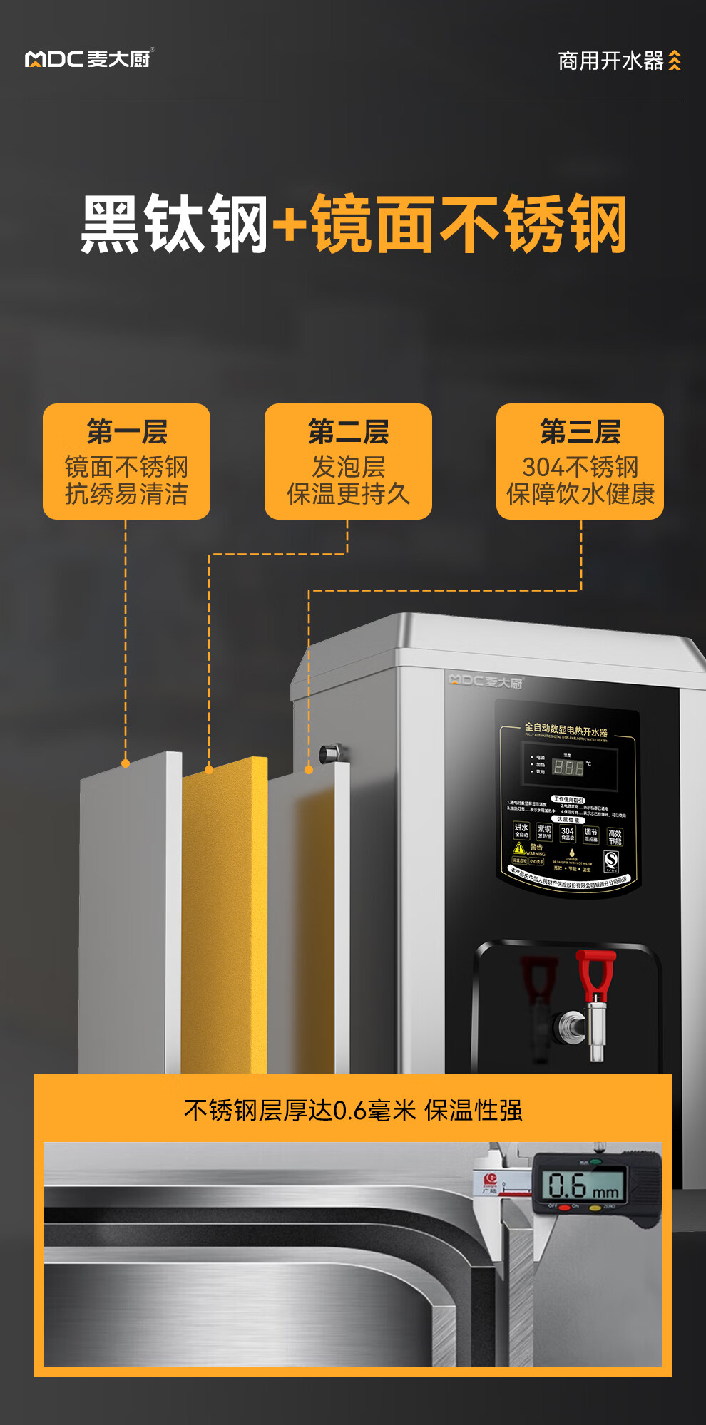 麥大廚黑鈦鋼數顯升級款速熱開水器商用120-210L