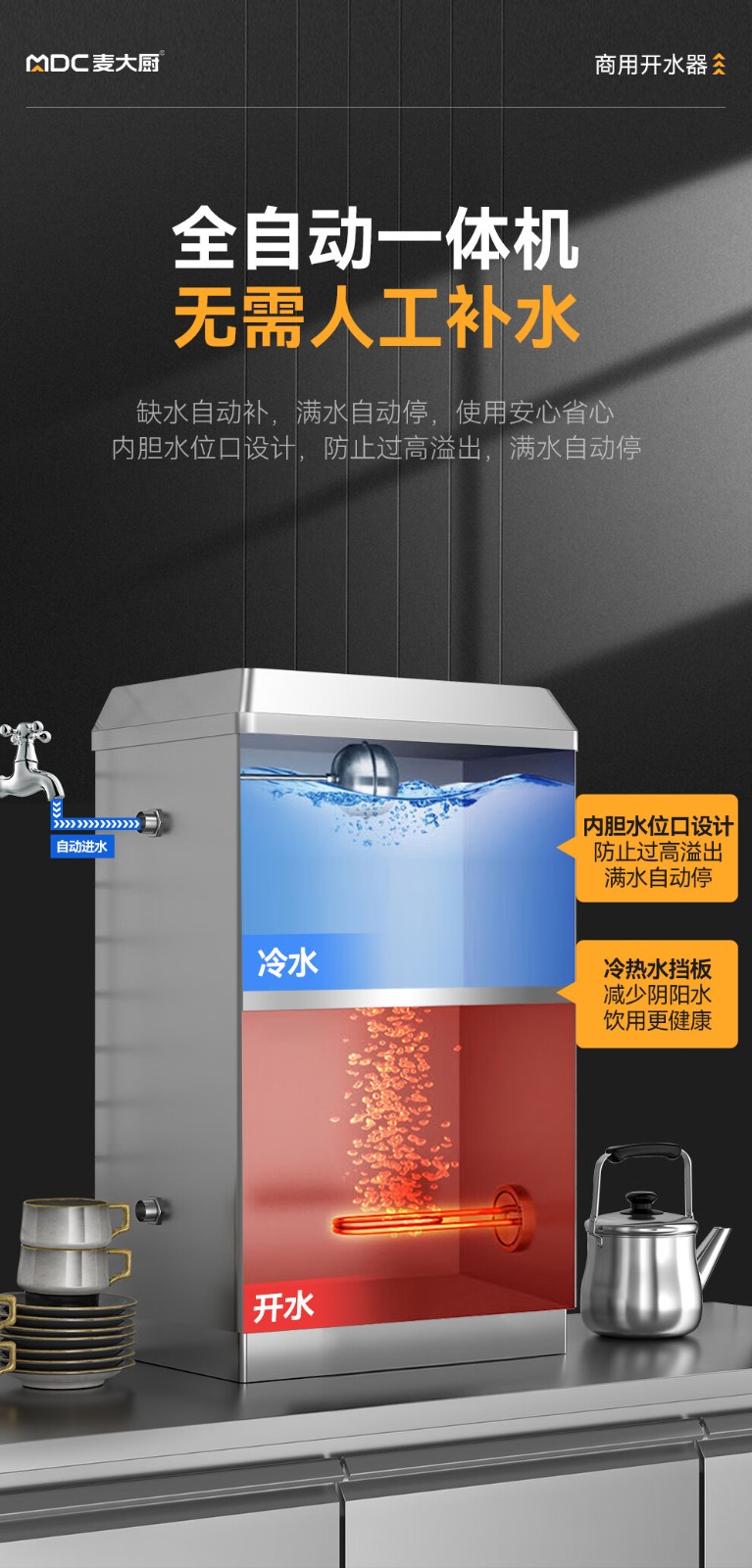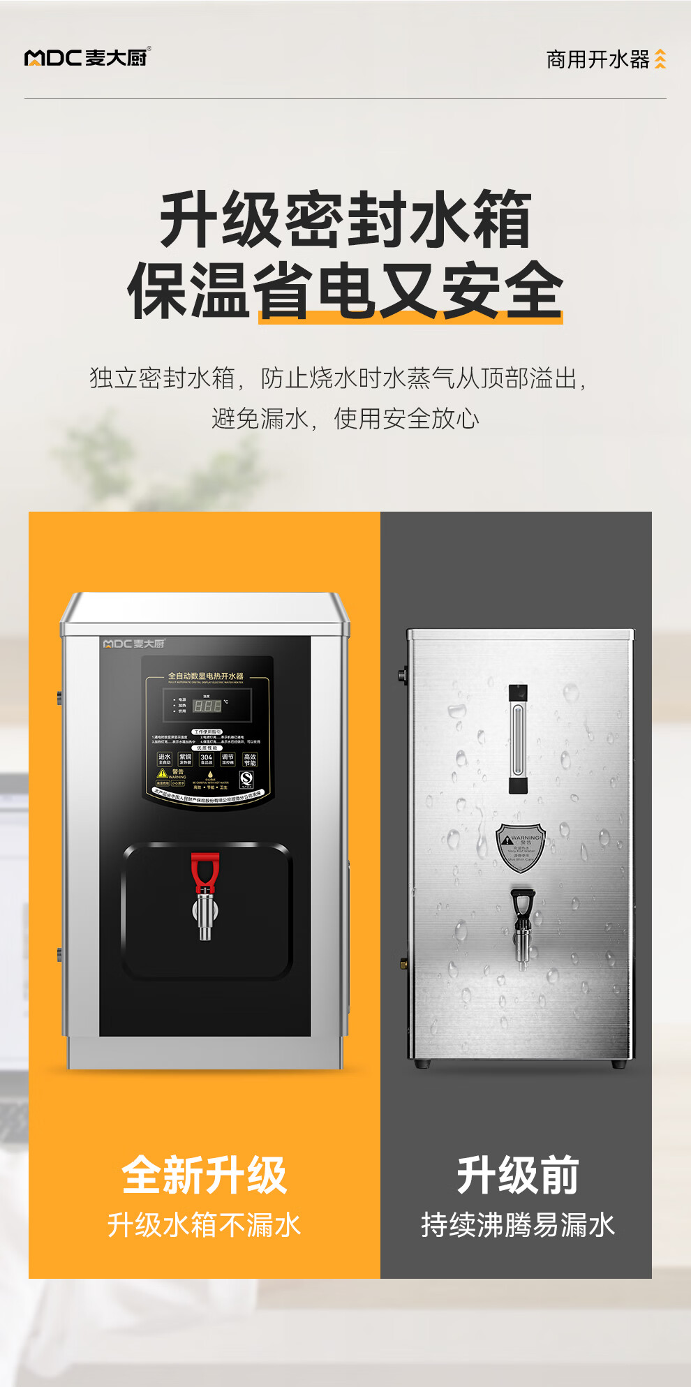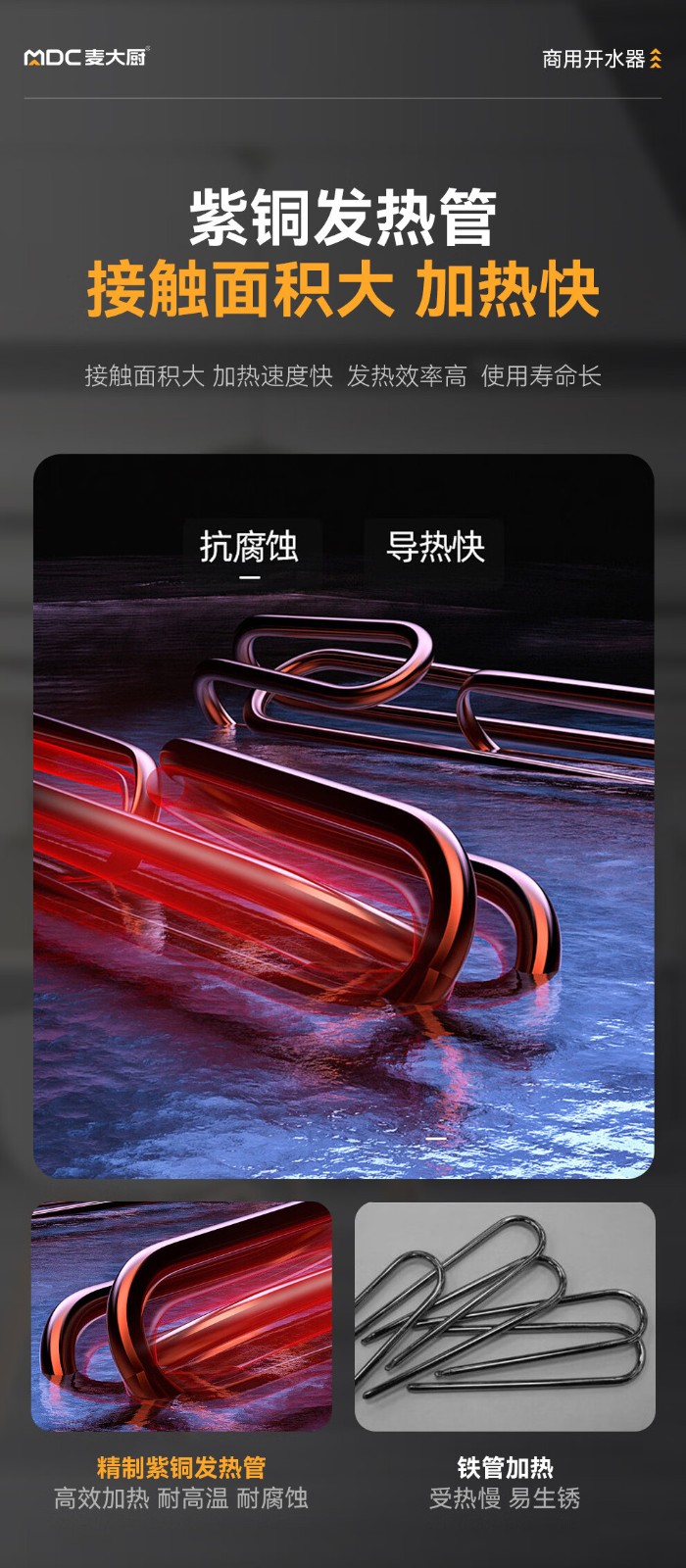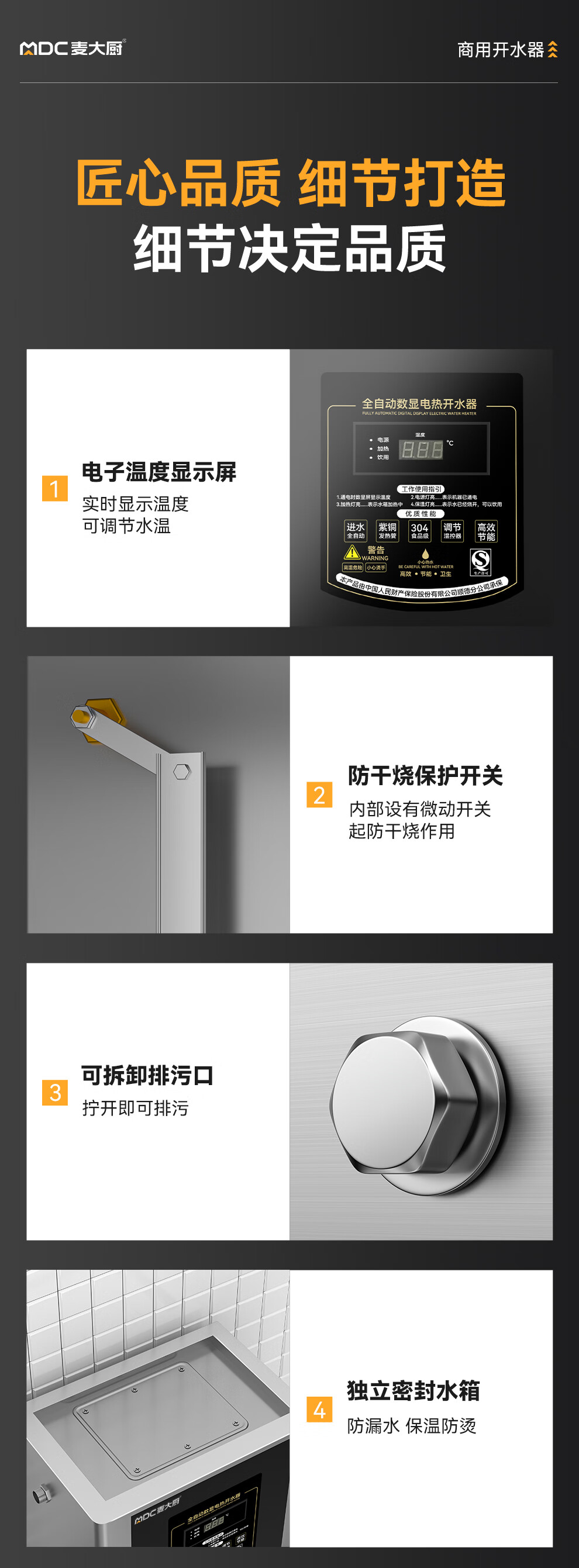 麥大廚黑鈦鋼數顯升級款速熱開水器商用120-210L
