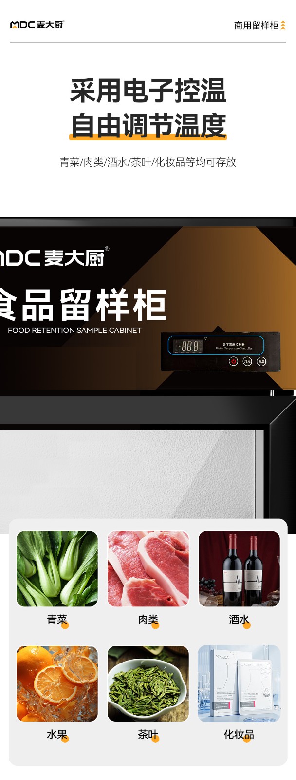 麥大廚電控款單門商用食品留樣柜180L-270L