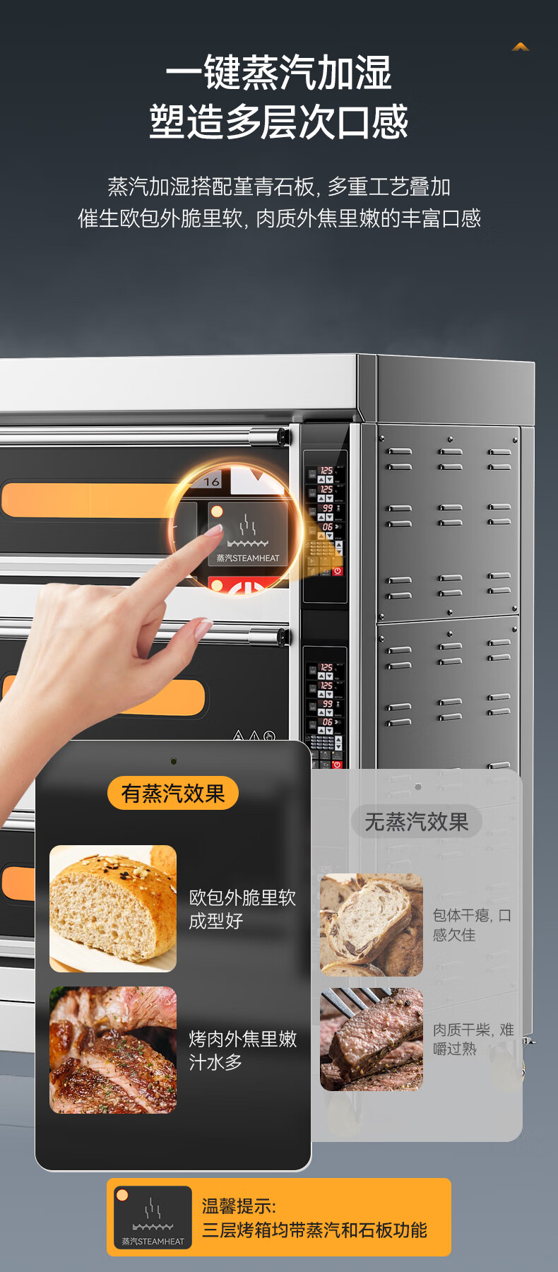 麥大廚豪華款三層六盤蒸汽石板專業(yè)烘焙烤箱25.8KW