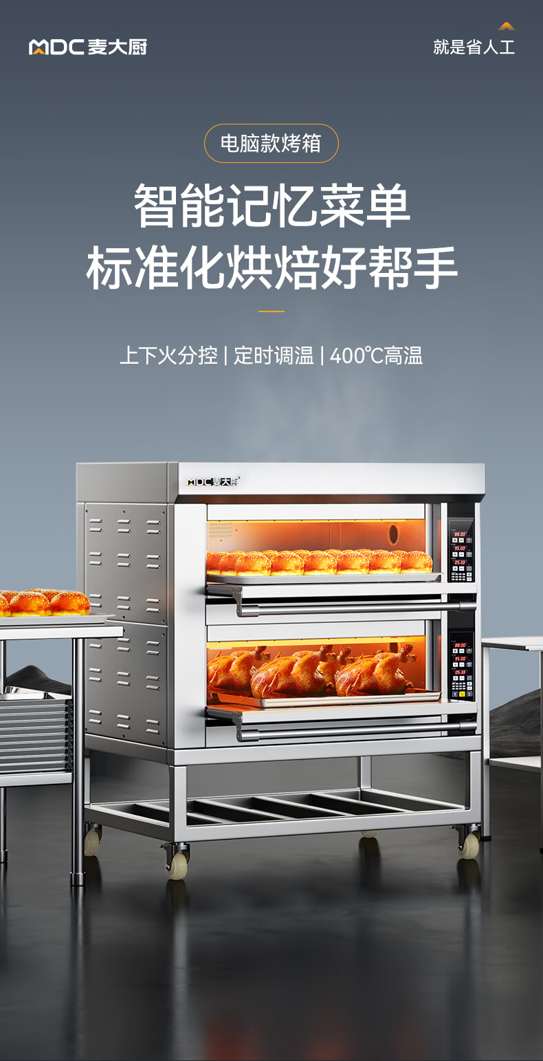 麥大廚豪華款兩層四盤智能控溫上下獨立烤箱13.2KW