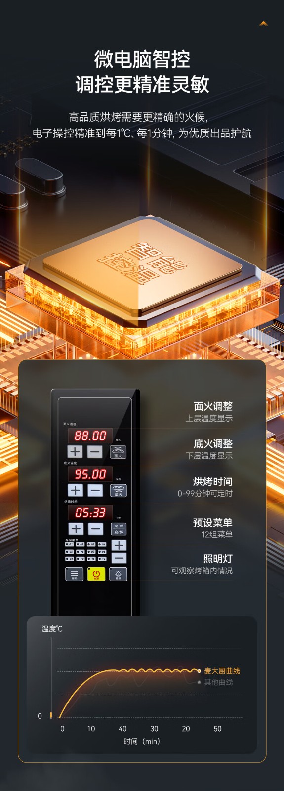 麥大廚豪華款三層九盤智能控溫上下獨立烤箱23.94KW