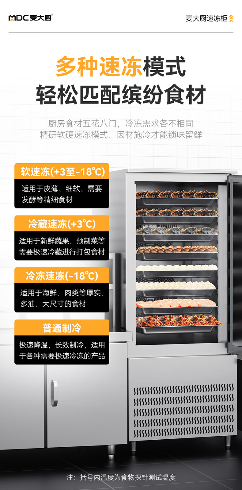 首頁 > 商廚產(chǎn)品 > 制冰機(jī) > 商用速凍柜 >麥大廚標(biāo)準(zhǔn)款15盤-45℃單門風(fēng)冷速凍柜2500W