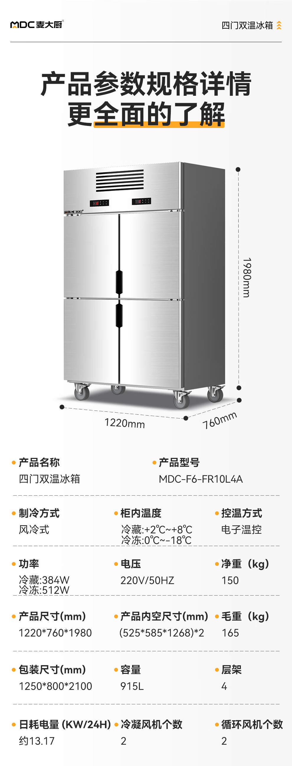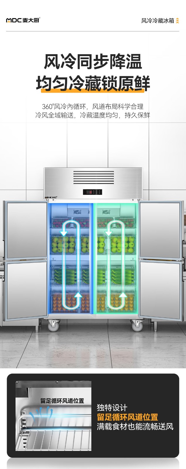 麥大廚經(jīng)濟款四門風冷立式冷藏柜580W