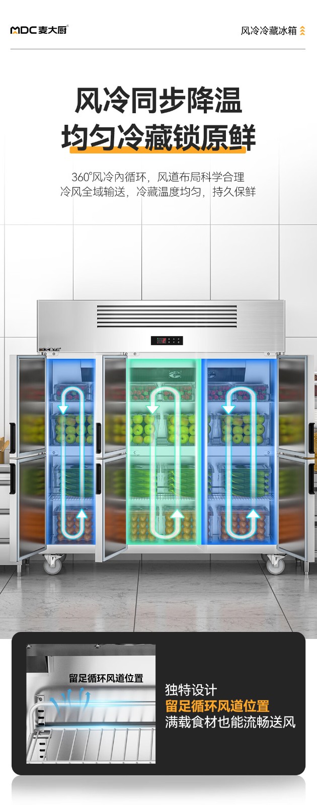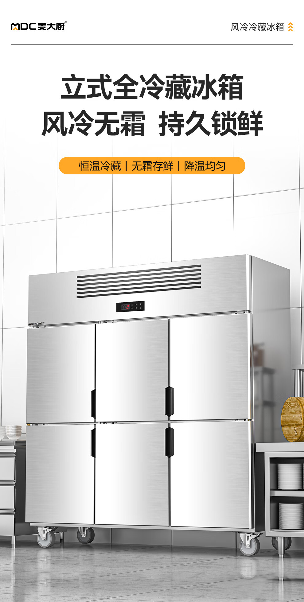 麥大廚經濟款六門風冷立式冷藏柜997W