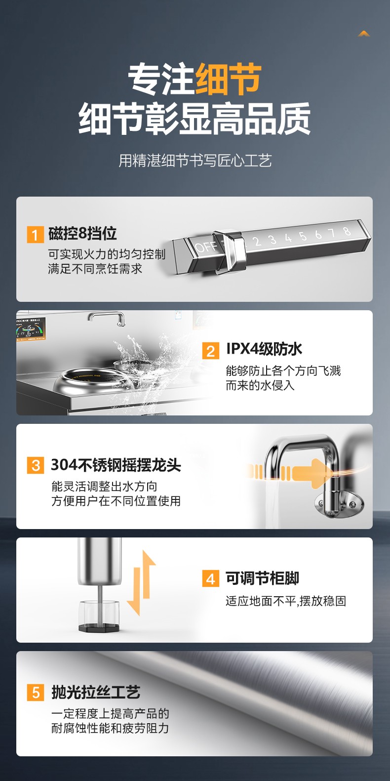 麥大廚金麥款201材質電磁雙頭單尾小炒爐16kw