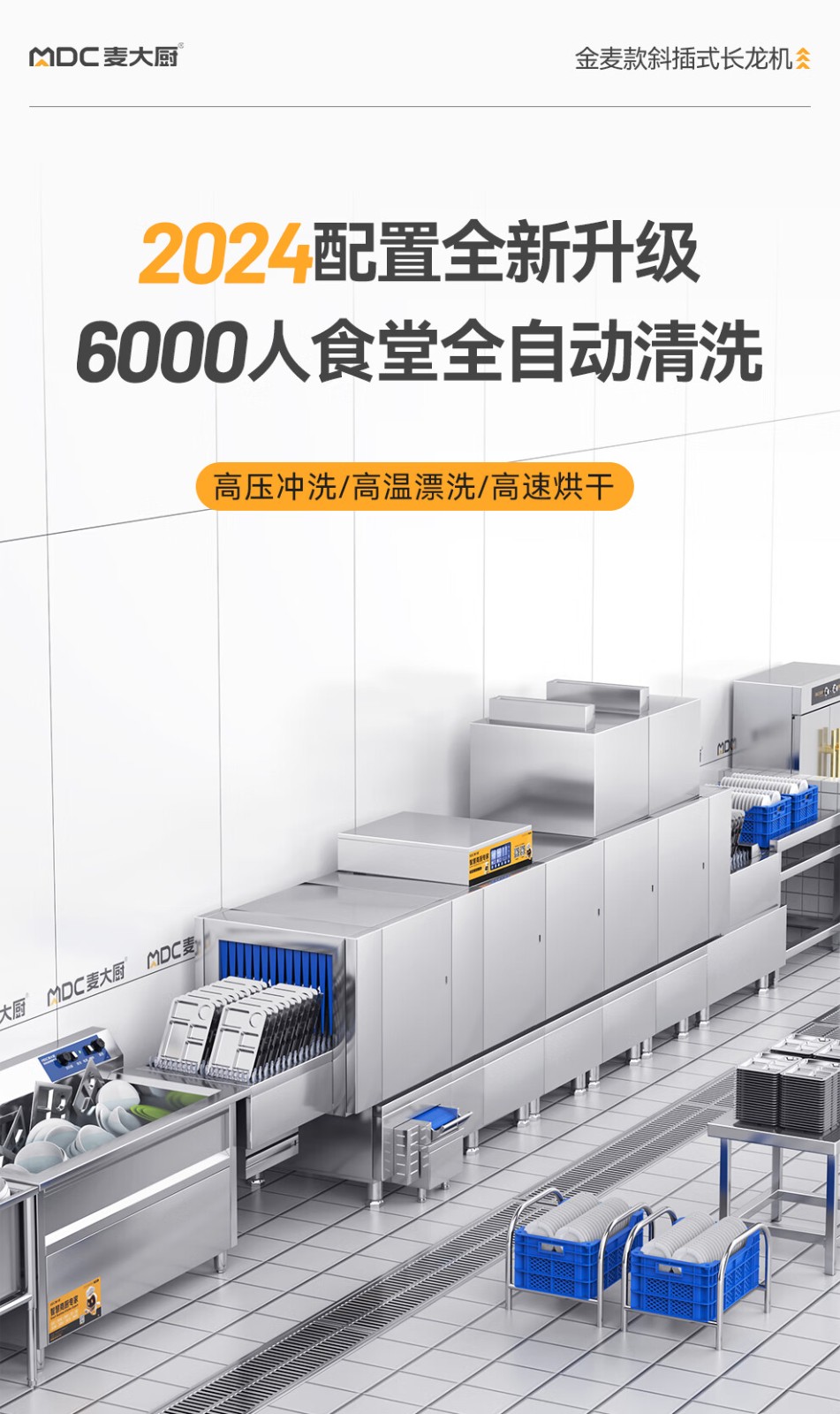 麥大廚金麥款斜插式觸屏熱回收3.75m三缸雙噴洗碗機