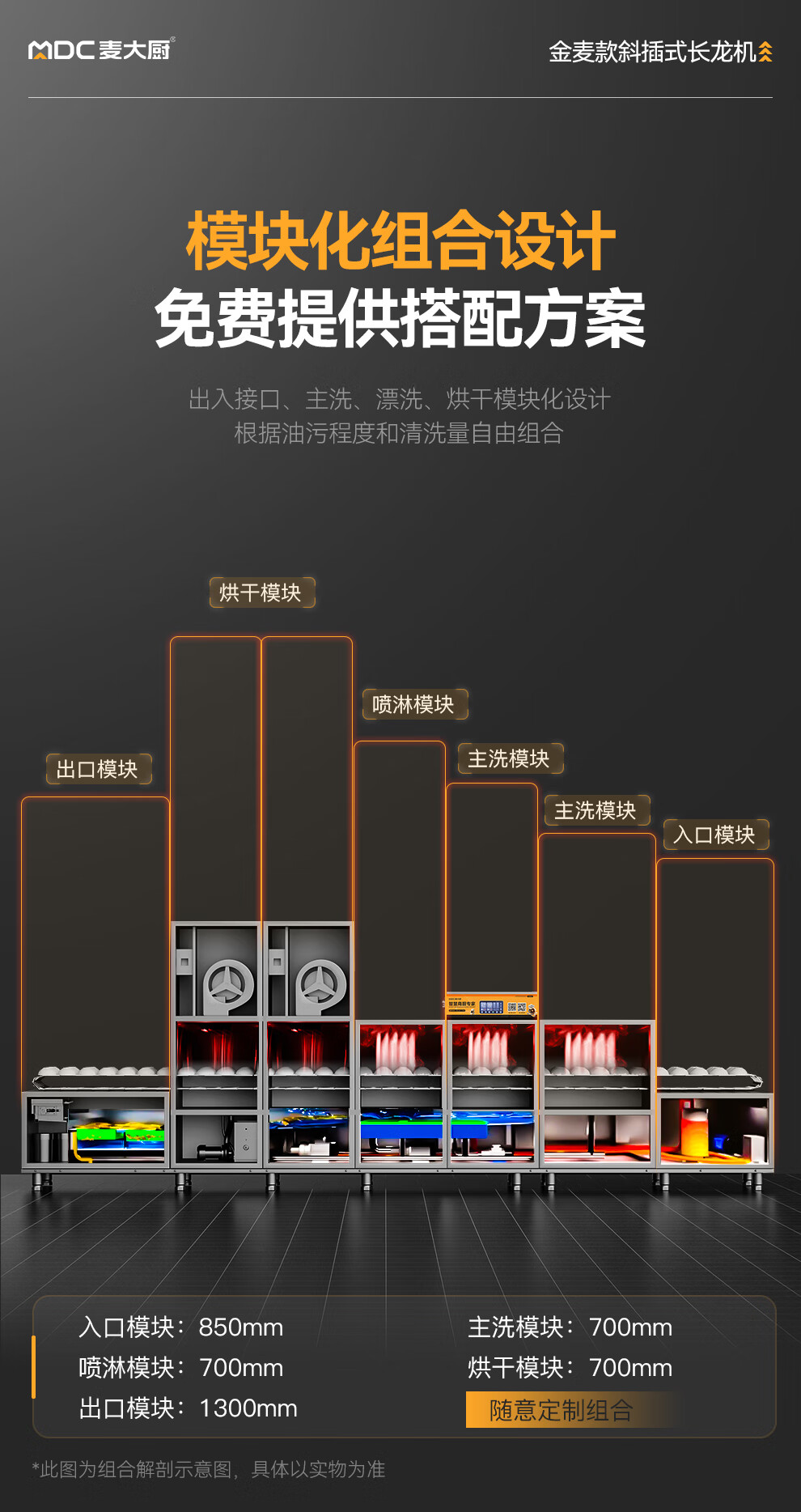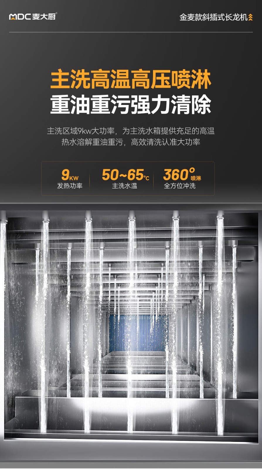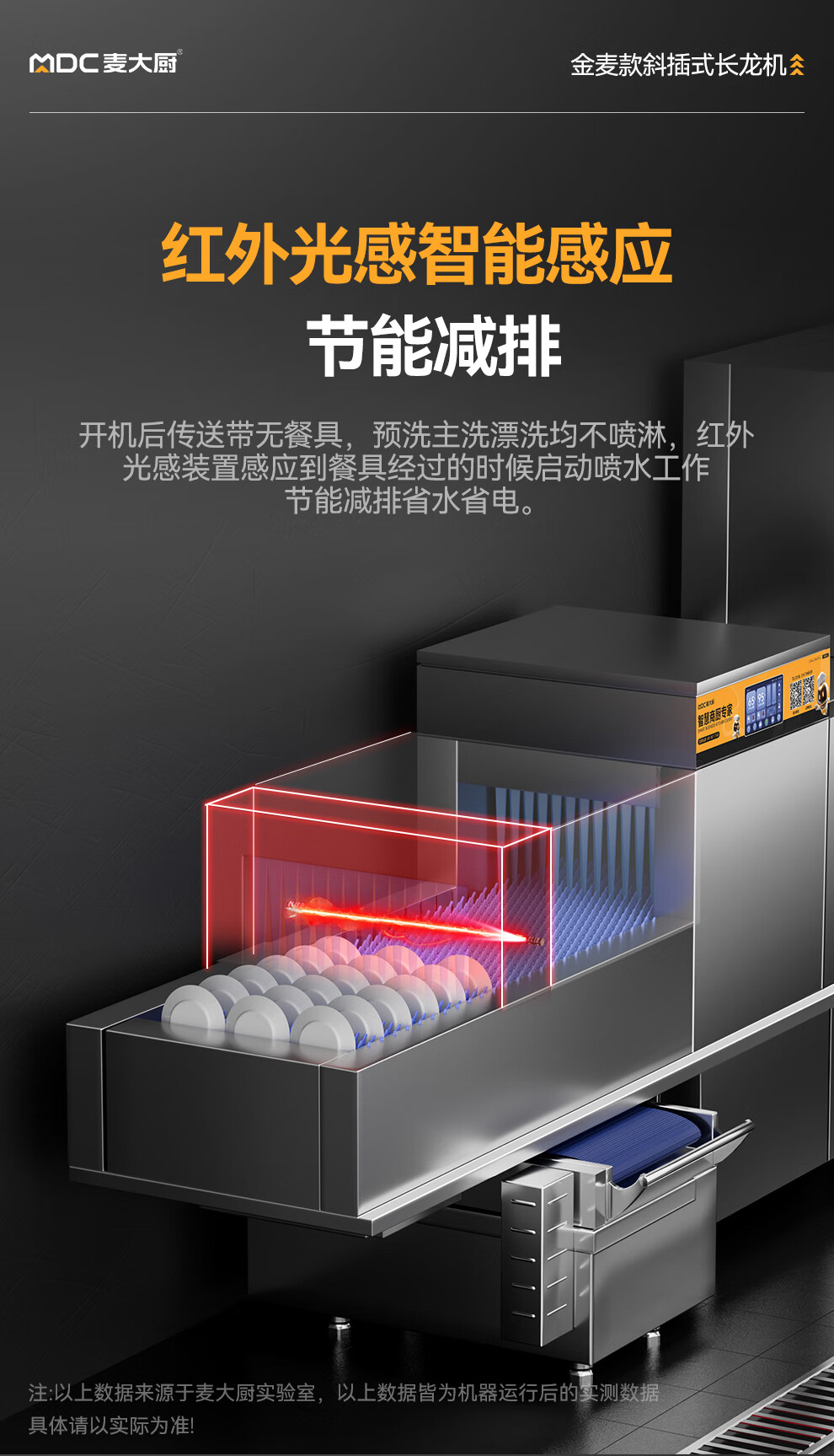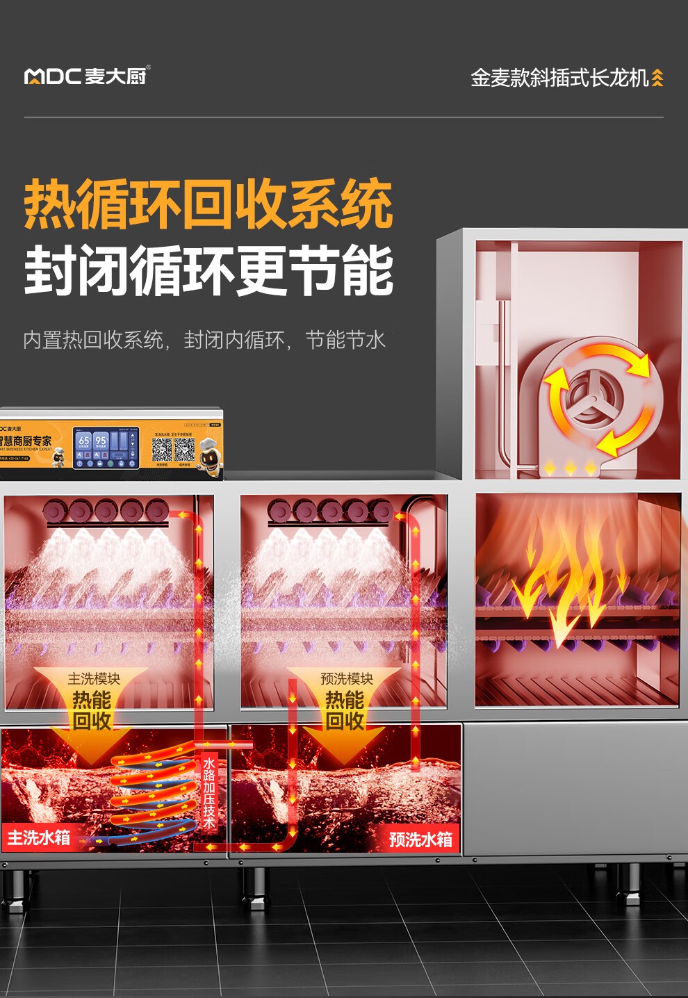 麥大廚金麥款斜插式觸屏熱回收5.45m三缸雙噴單烘帶除渣洗碗機