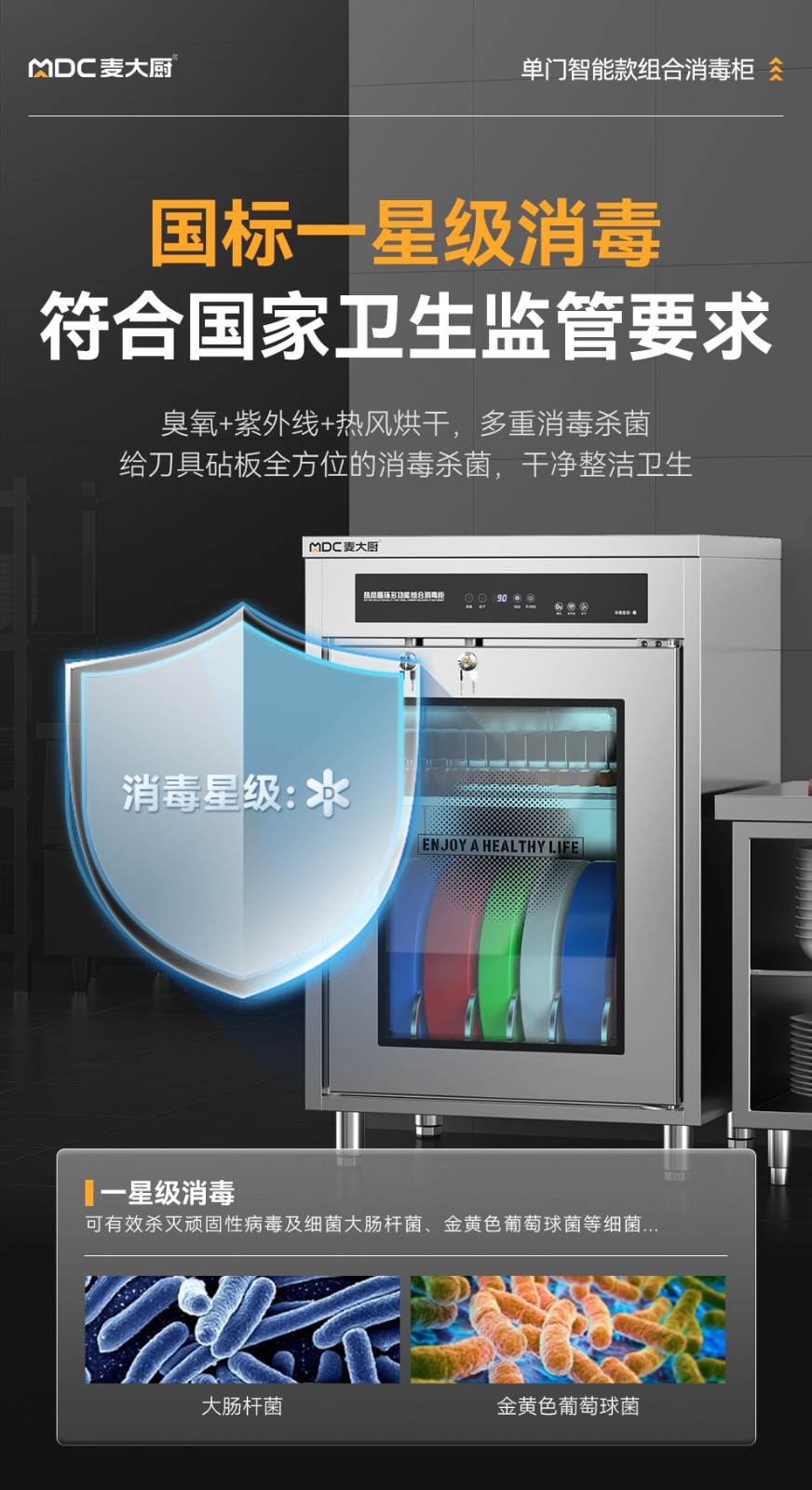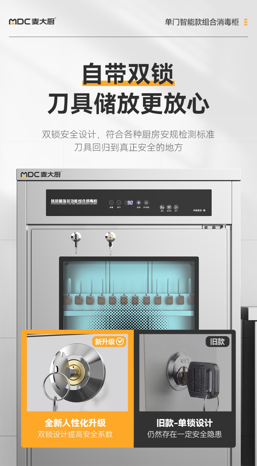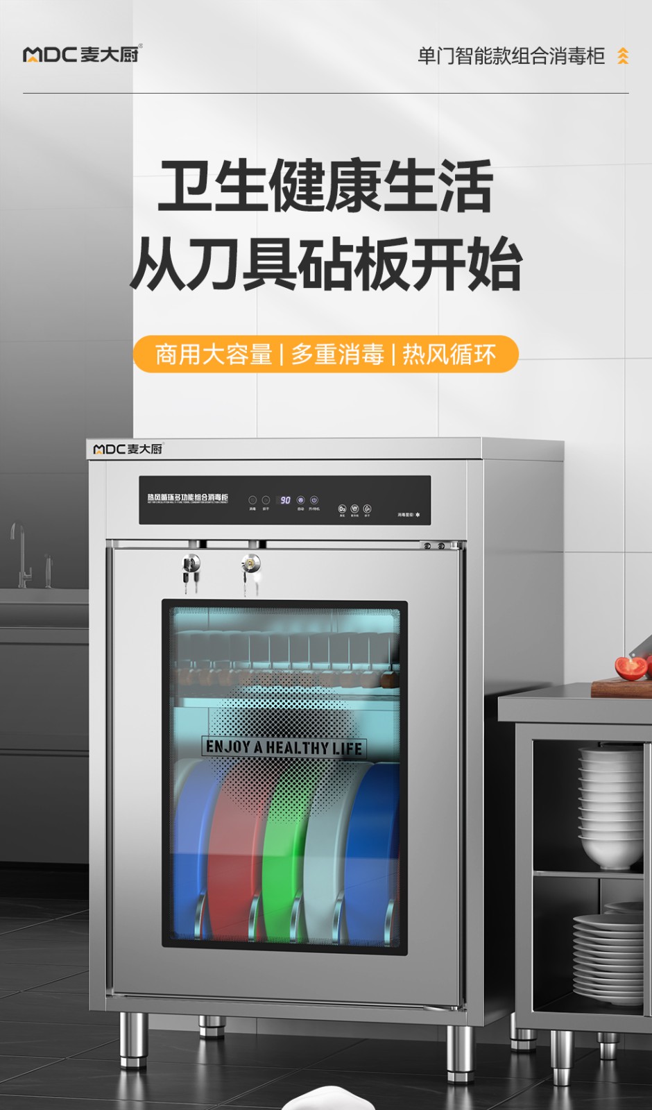 麥大廚智能款單門雙層刀具砧板組合臭氧紫外線熱風循環消毒柜