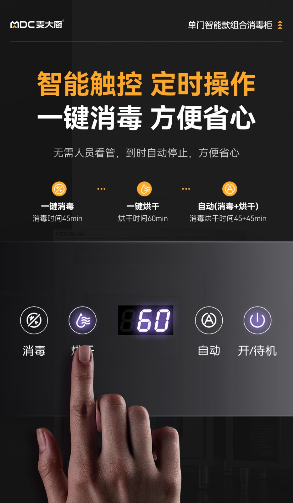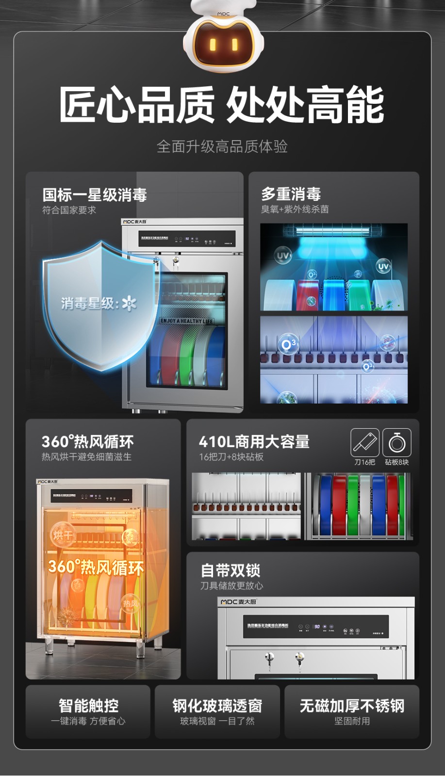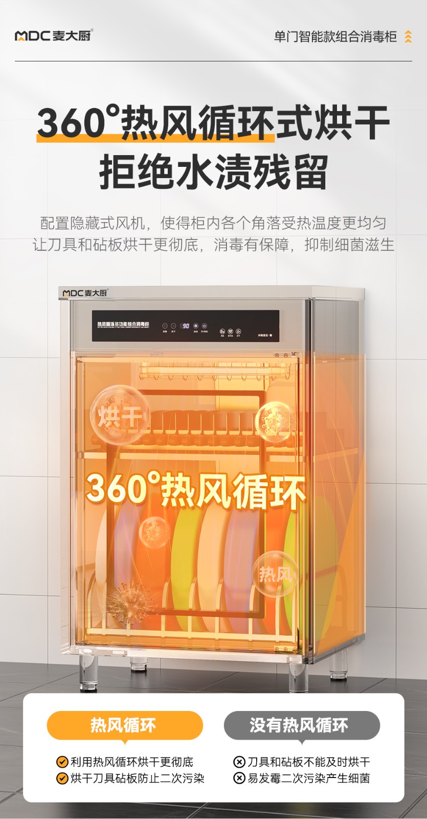 麥大廚智能款單門雙層刀具砧板組合臭氧紫外線熱風循環消毒柜