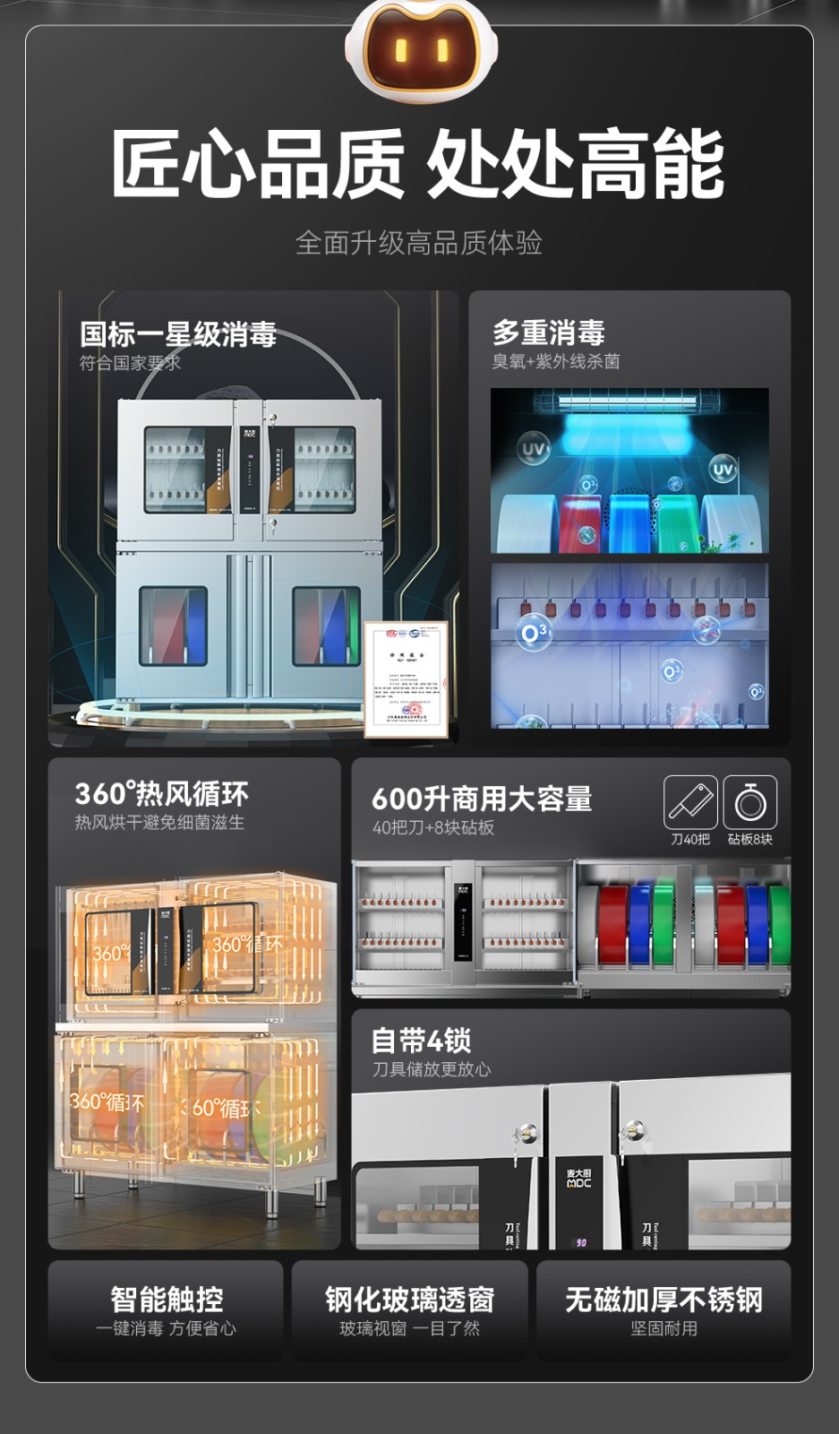 麥大廚智能款四門雙層刀具砧板組合臭氧紫外線熱風循環消毒柜