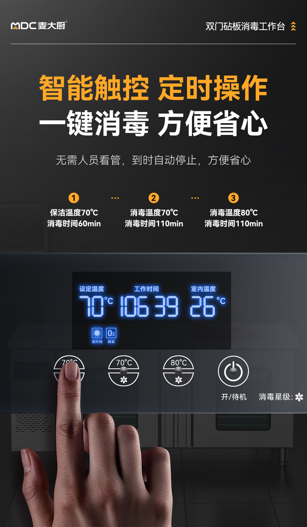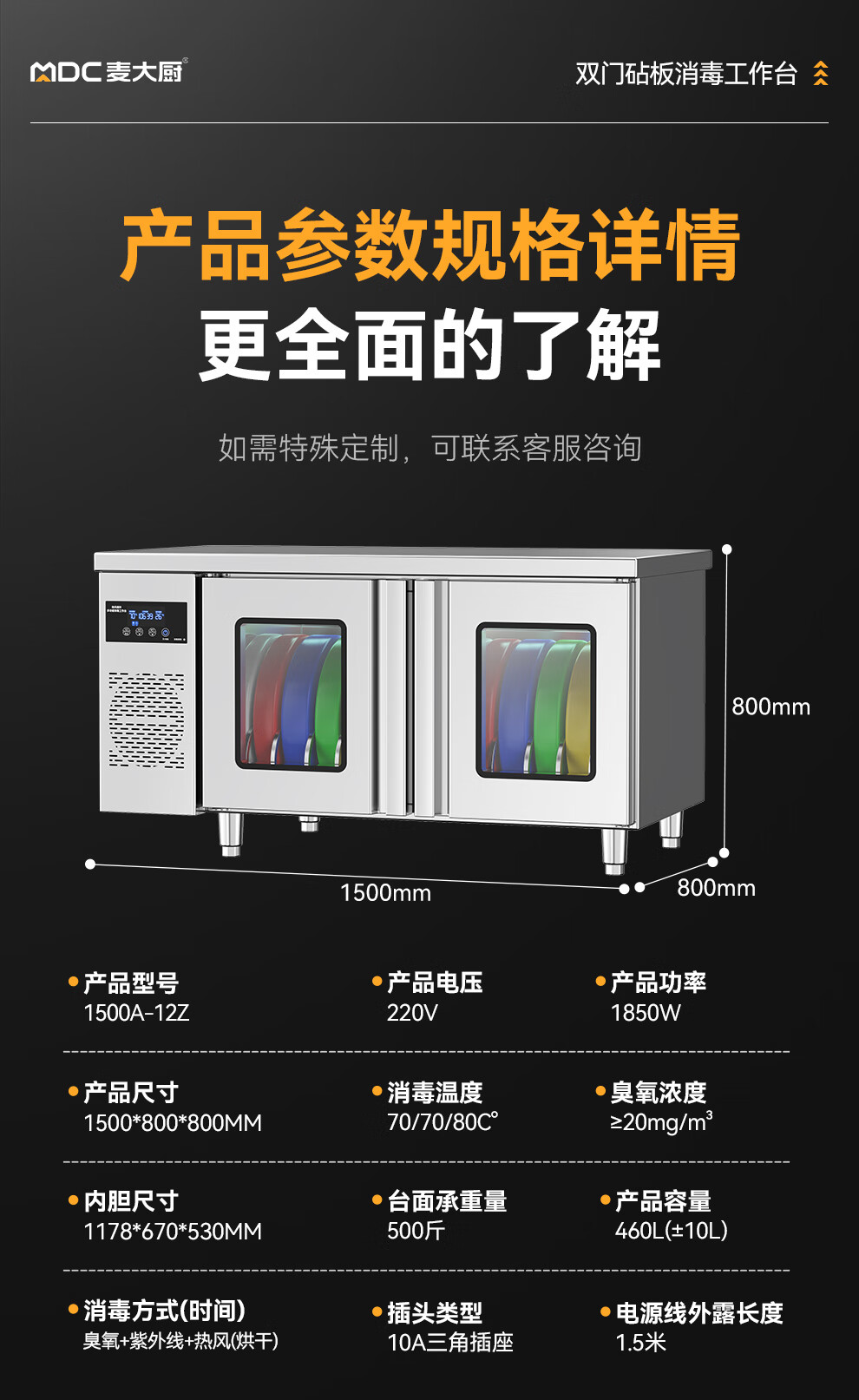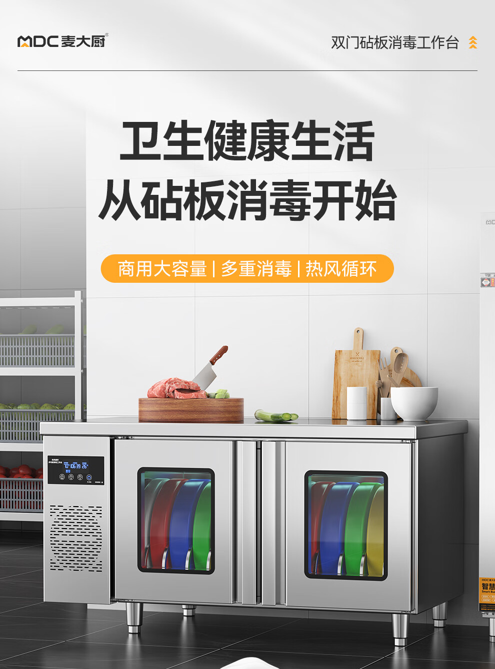 麥大廚1.5m雙門砧板組合臭氧紫外線熱風循環消毒工作臺