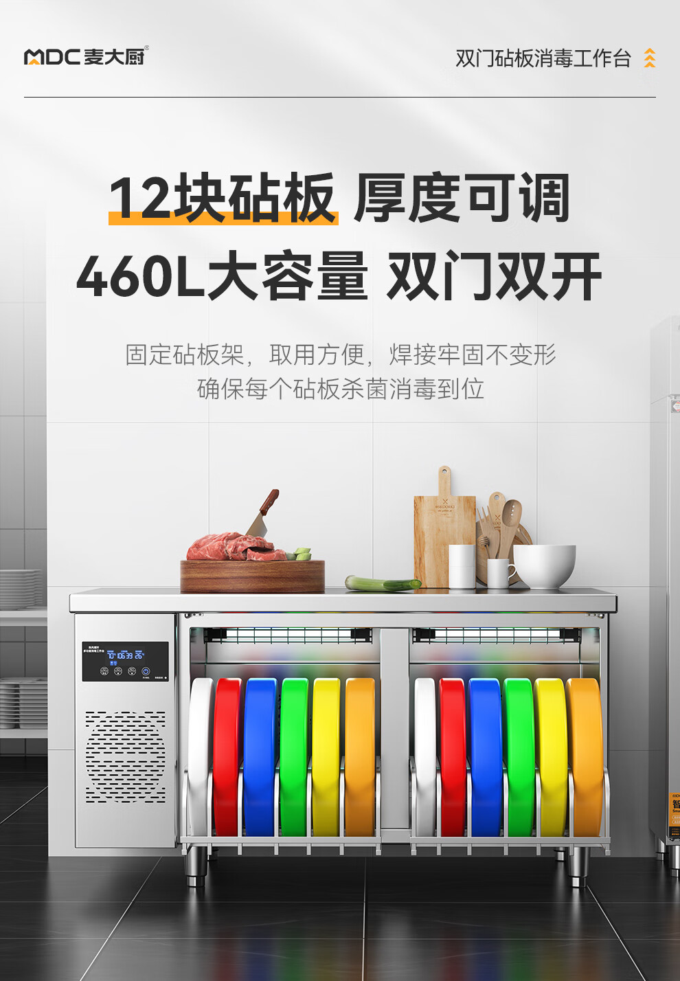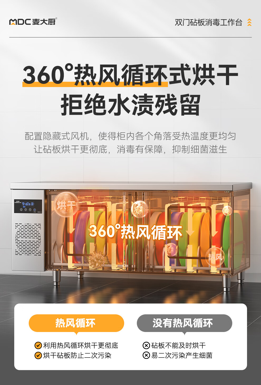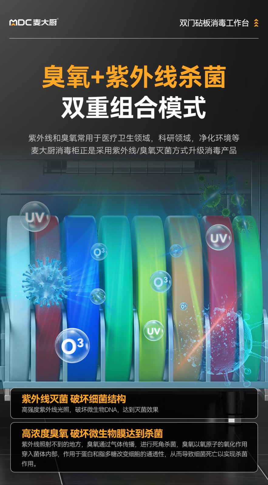 麥大廚1.5m雙門砧板組合臭氧紫外線熱風循環消毒工作臺