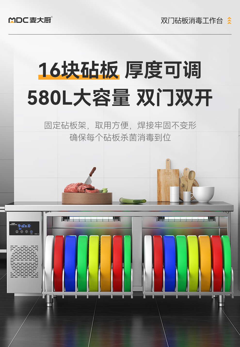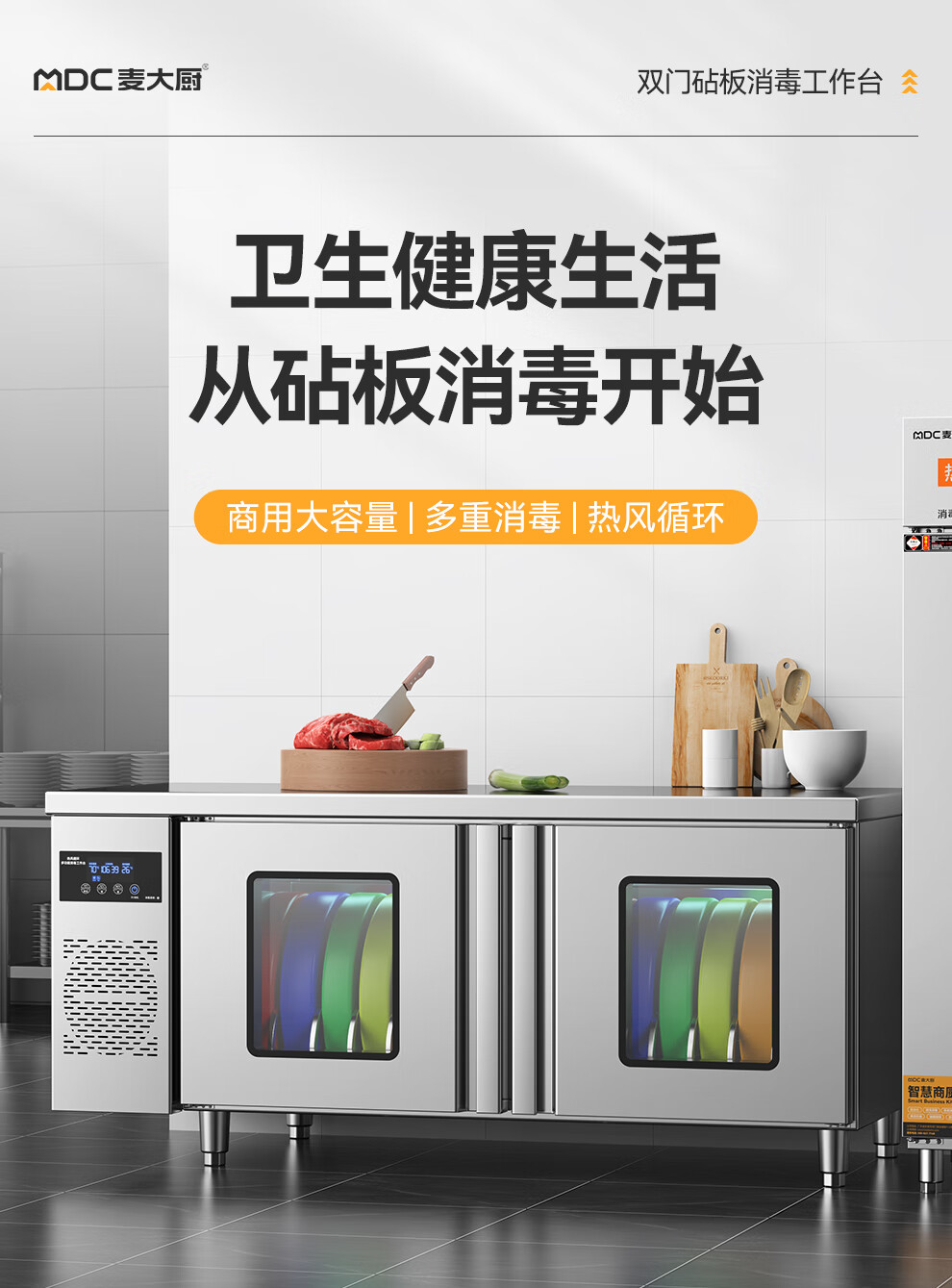 麥大廚1.8m雙門砧板組合臭氧紫外線熱風循環消毒工作臺