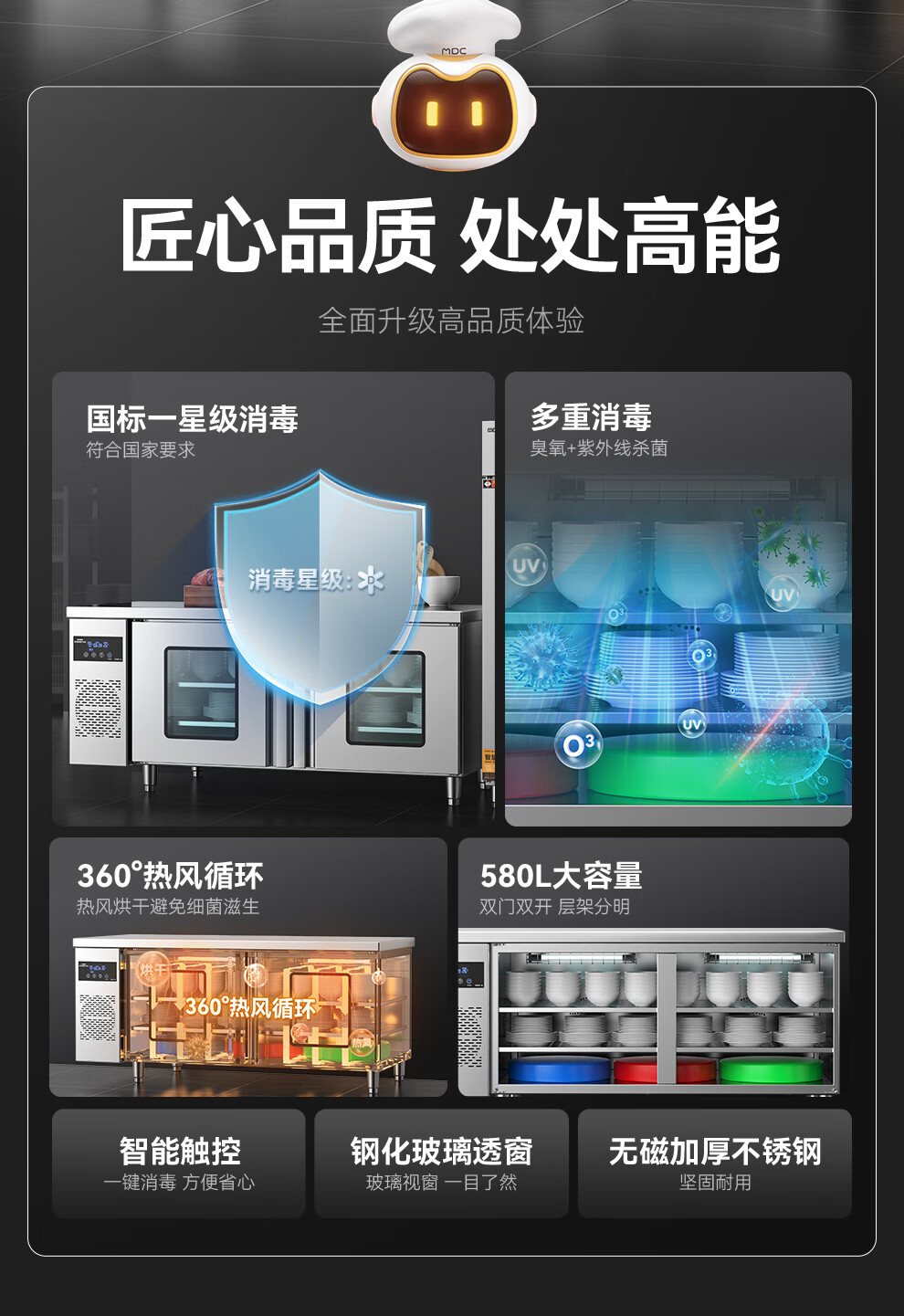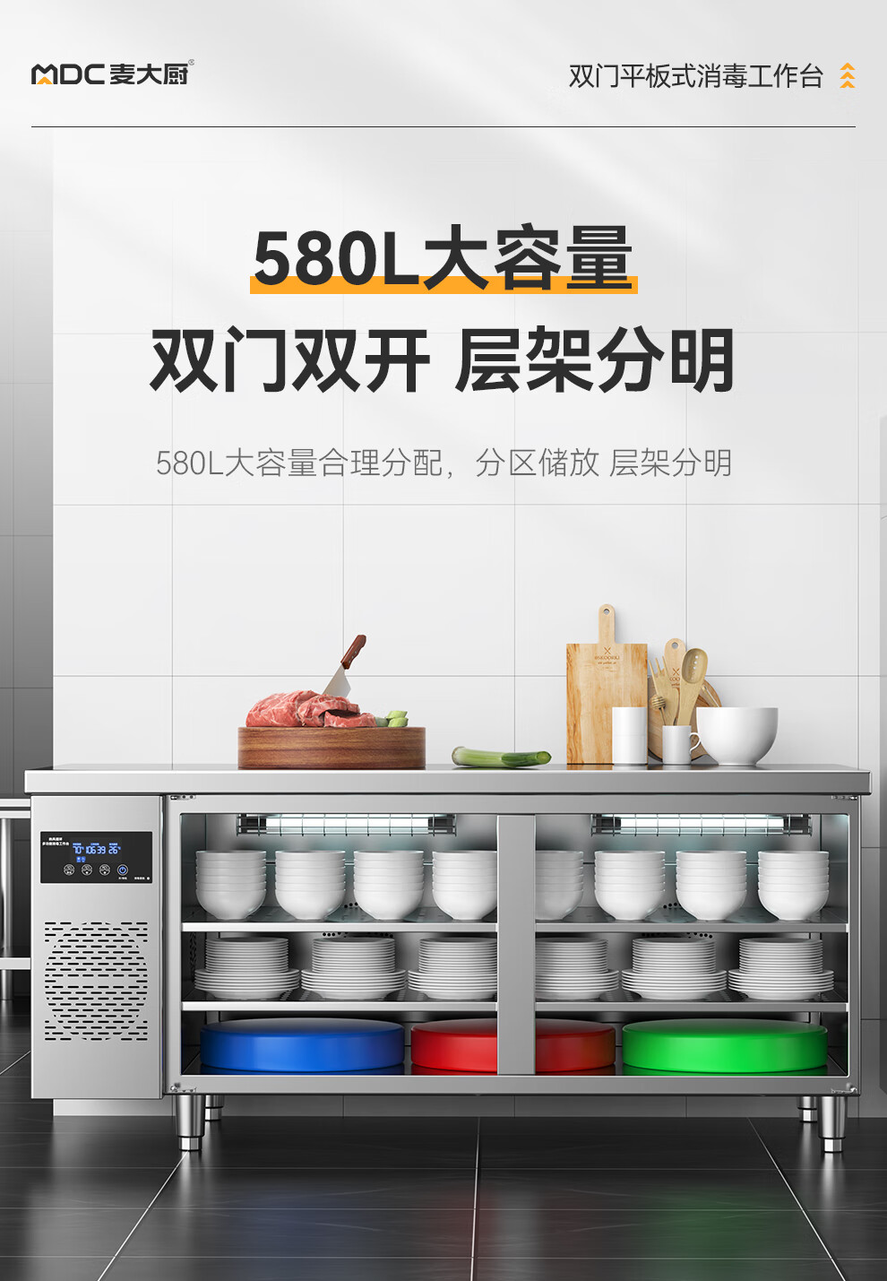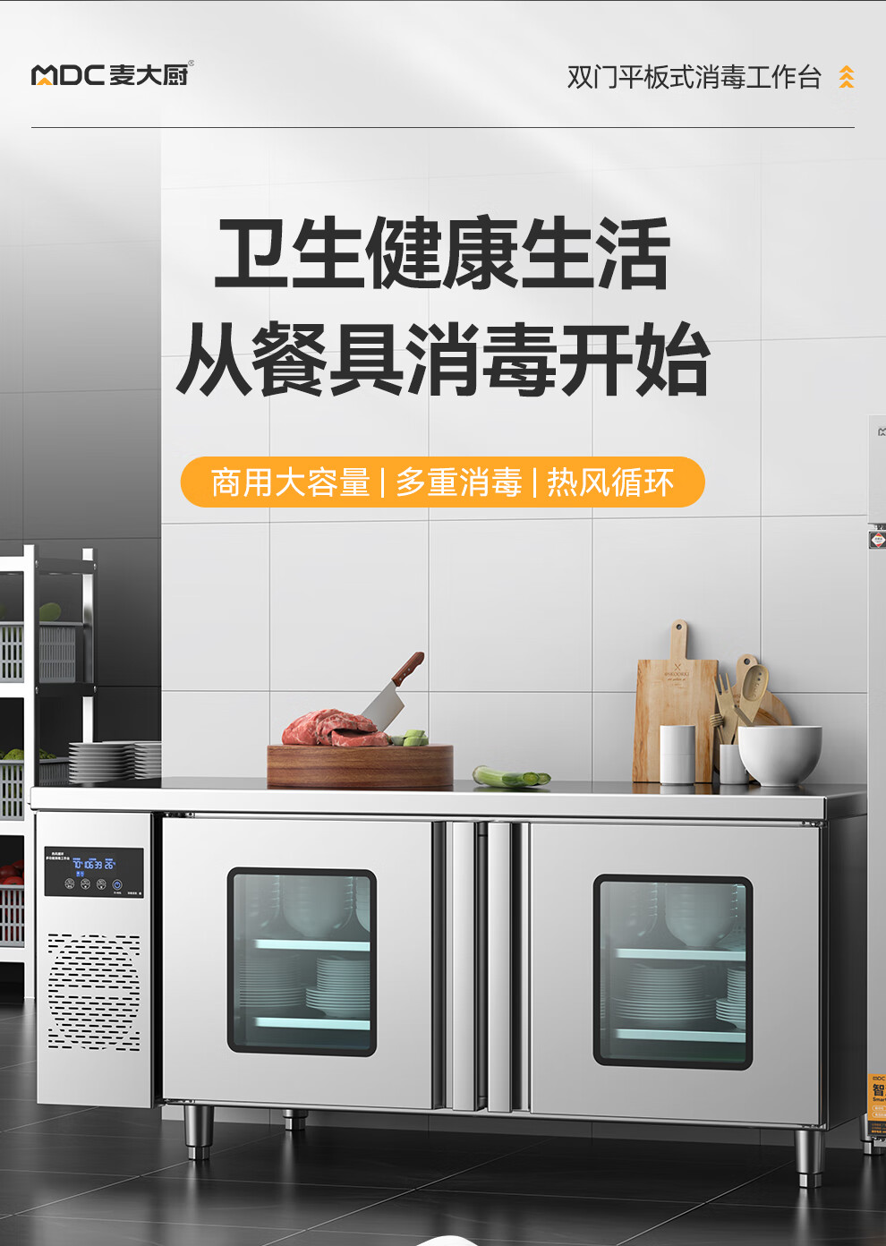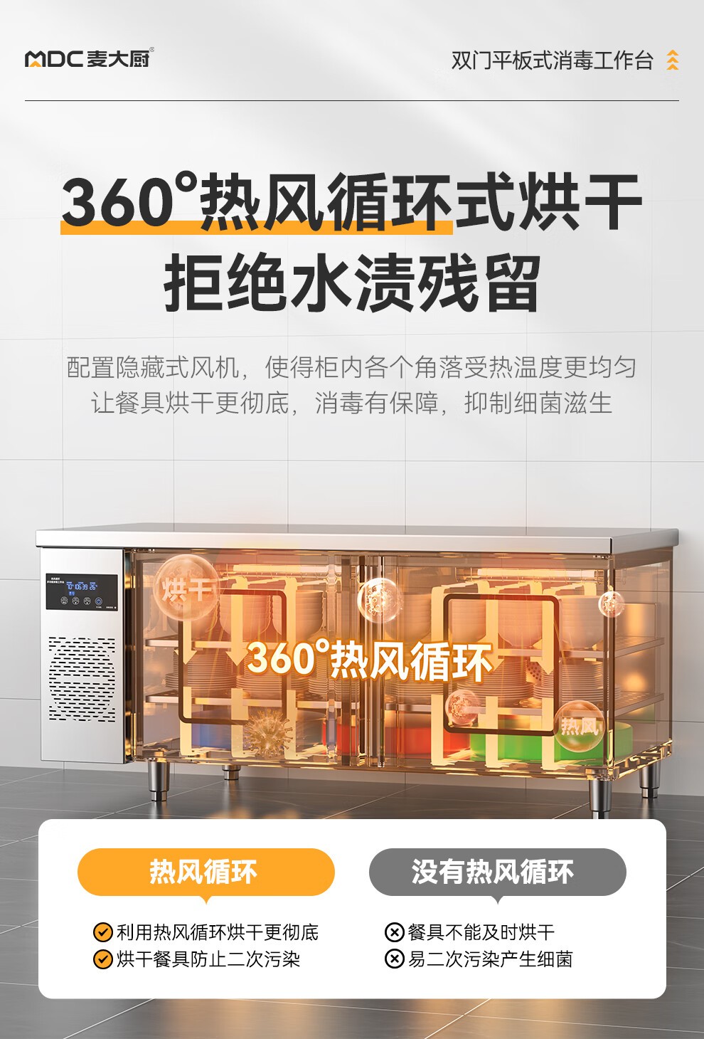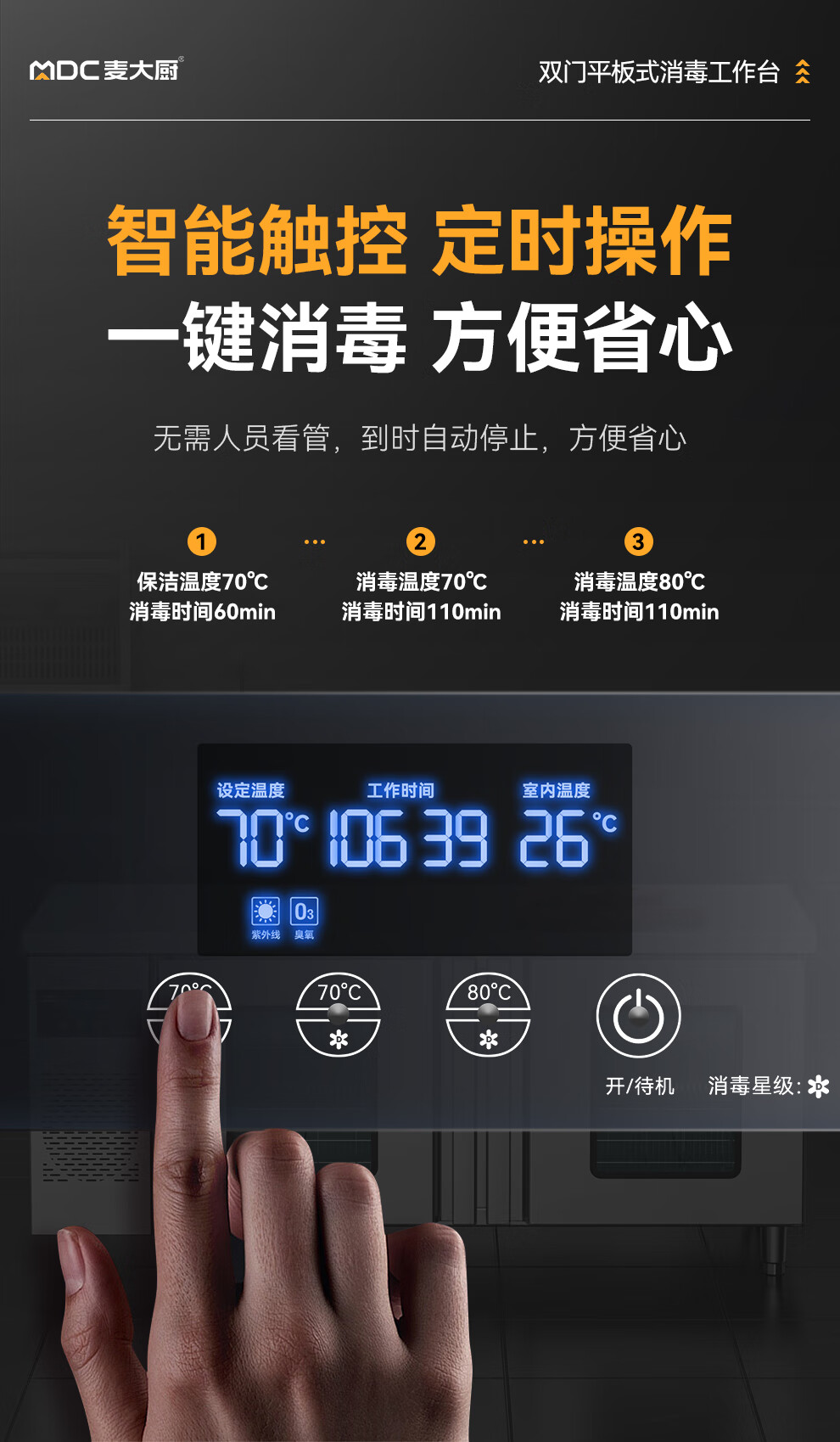 麥大廚1.8m雙門平板式臭氧紫外線熱風循環消毒工作臺