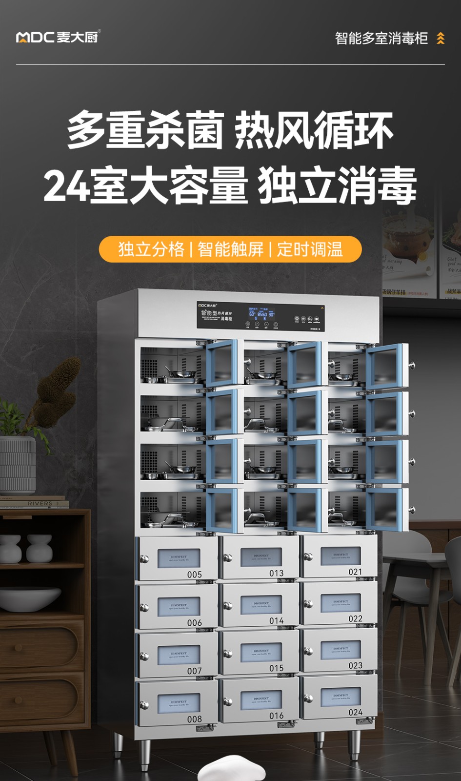 麥大廚24室智能觸屏型熱風循環中溫消毒柜2.3kw