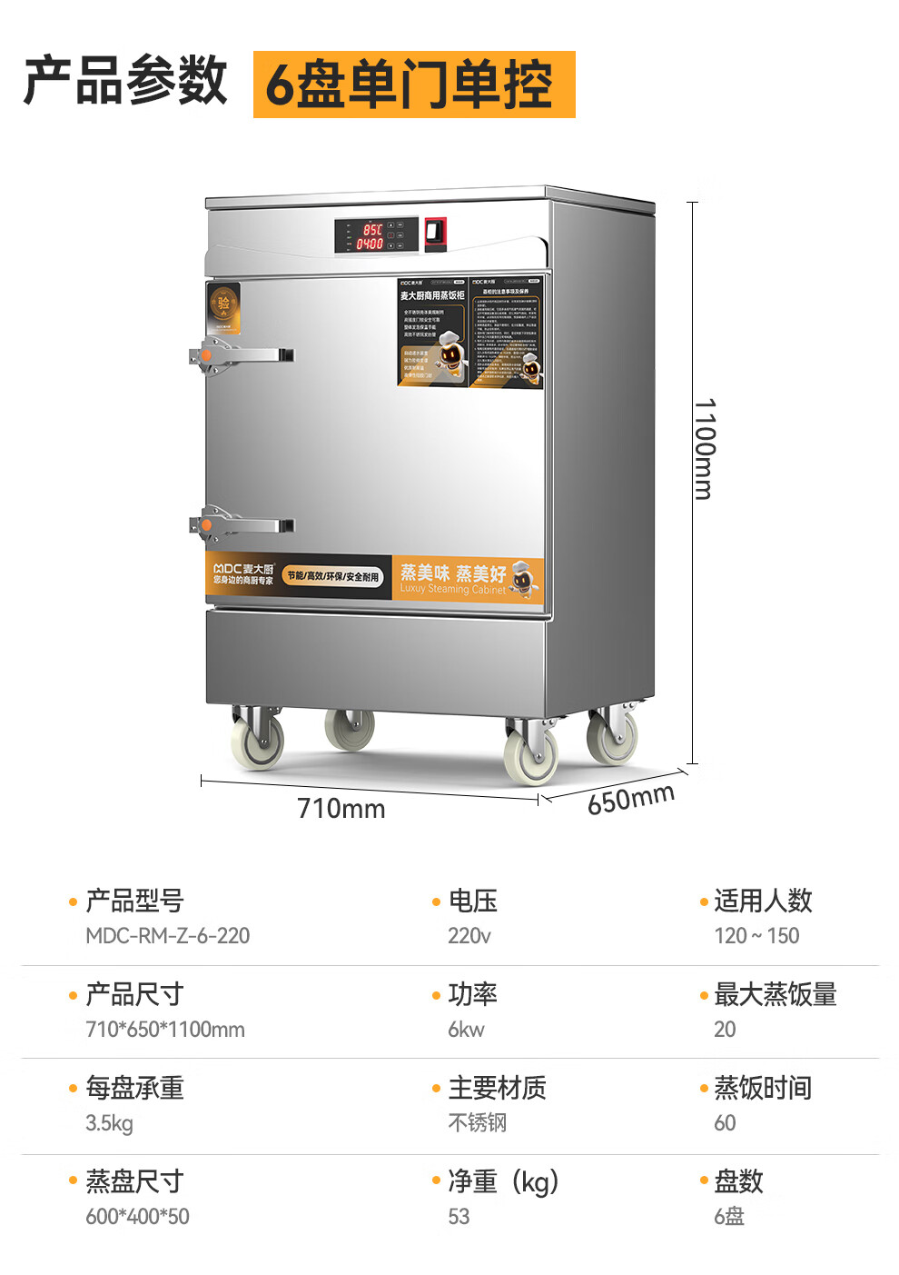 每盤承重:3.5kg - 更多MDC商用蒸柜規格咨詢在線客服