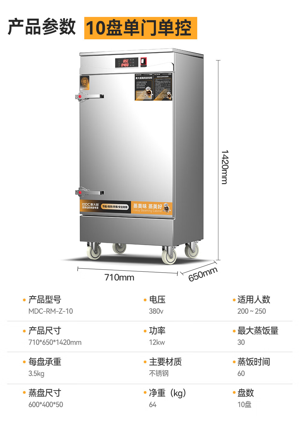 麥大廚金麥款380V電熱智能型10盤單門單控蒸柜