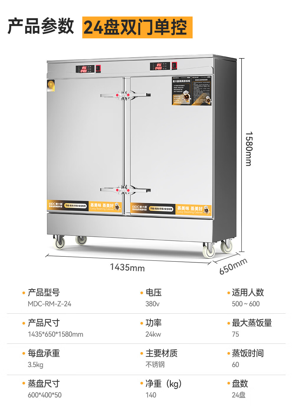 麥大廚金麥款380V電熱智能型24盤雙門雙控蒸柜