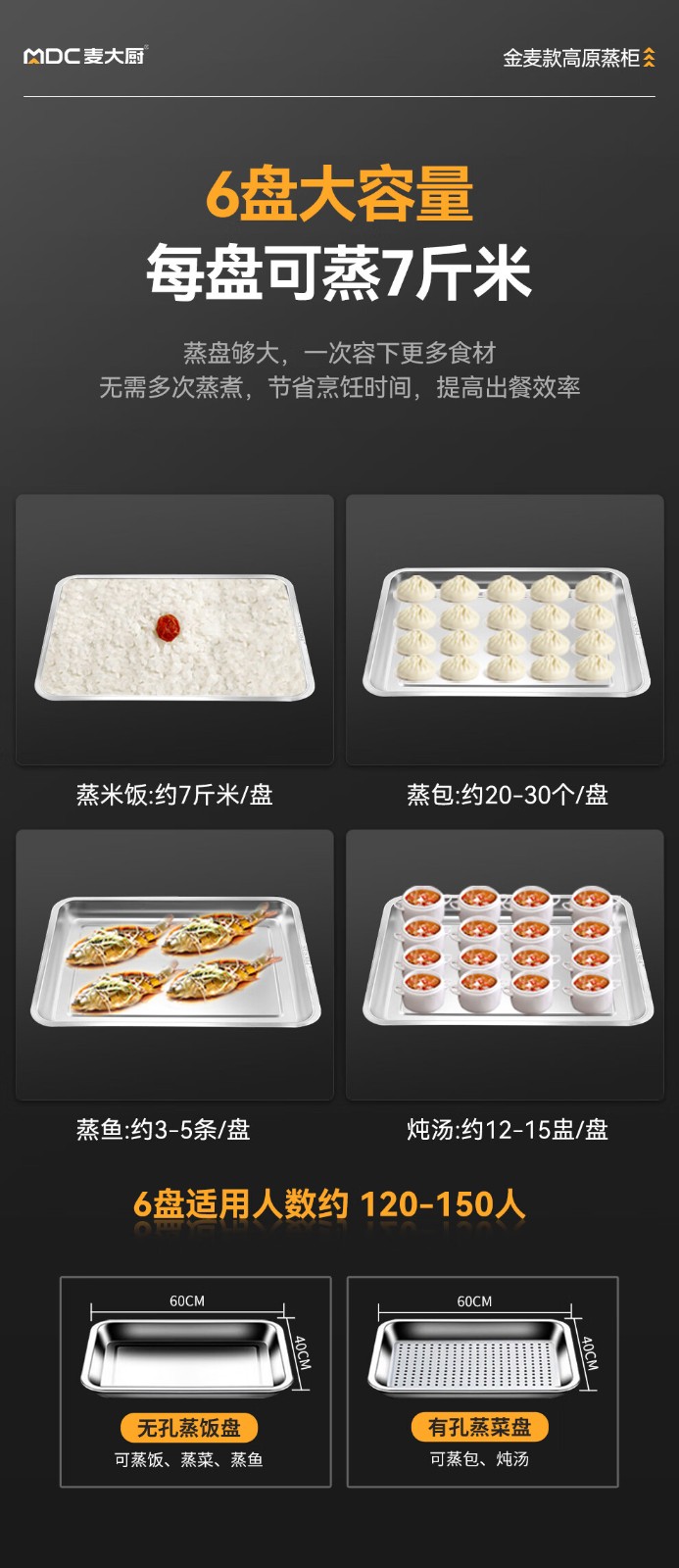 麥大廚金麥款6盤電熱380V單門高原蒸柜6KW