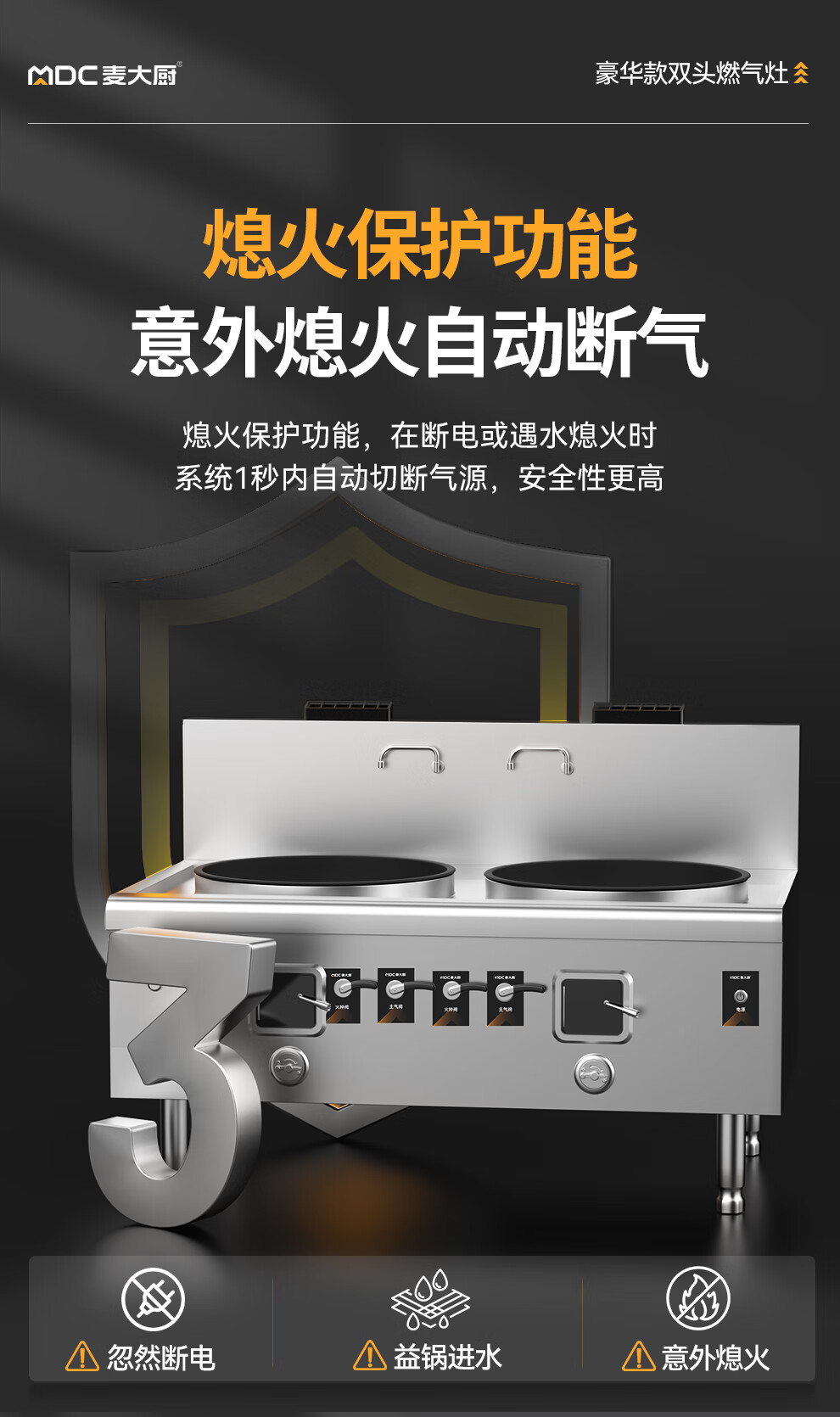 麥大廚燃氣猛火大鍋灶豪華款燃氣雙頭大炒爐600