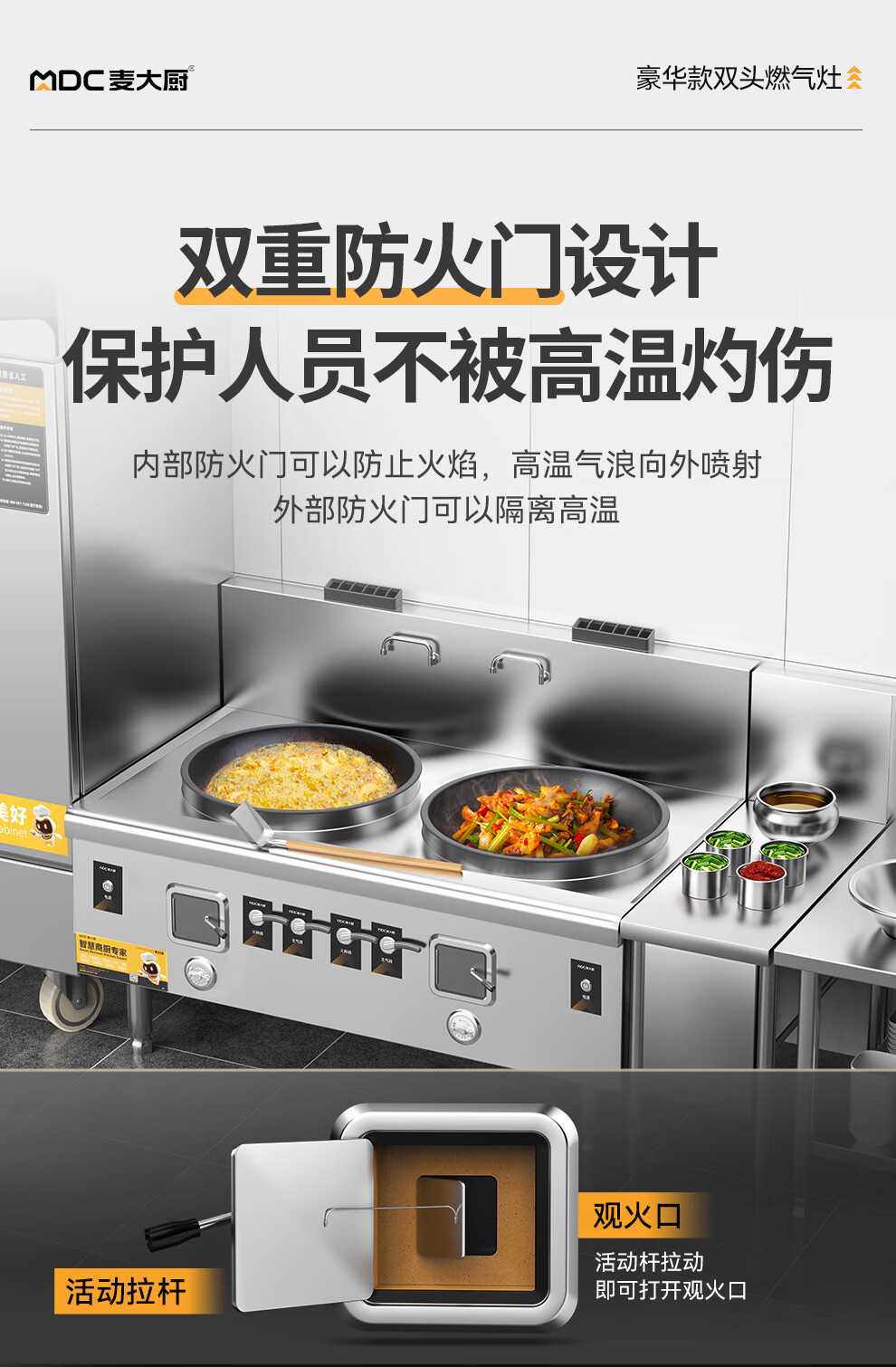 麥大廚燃氣猛火大鍋灶豪華款燃氣雙頭大炒爐800