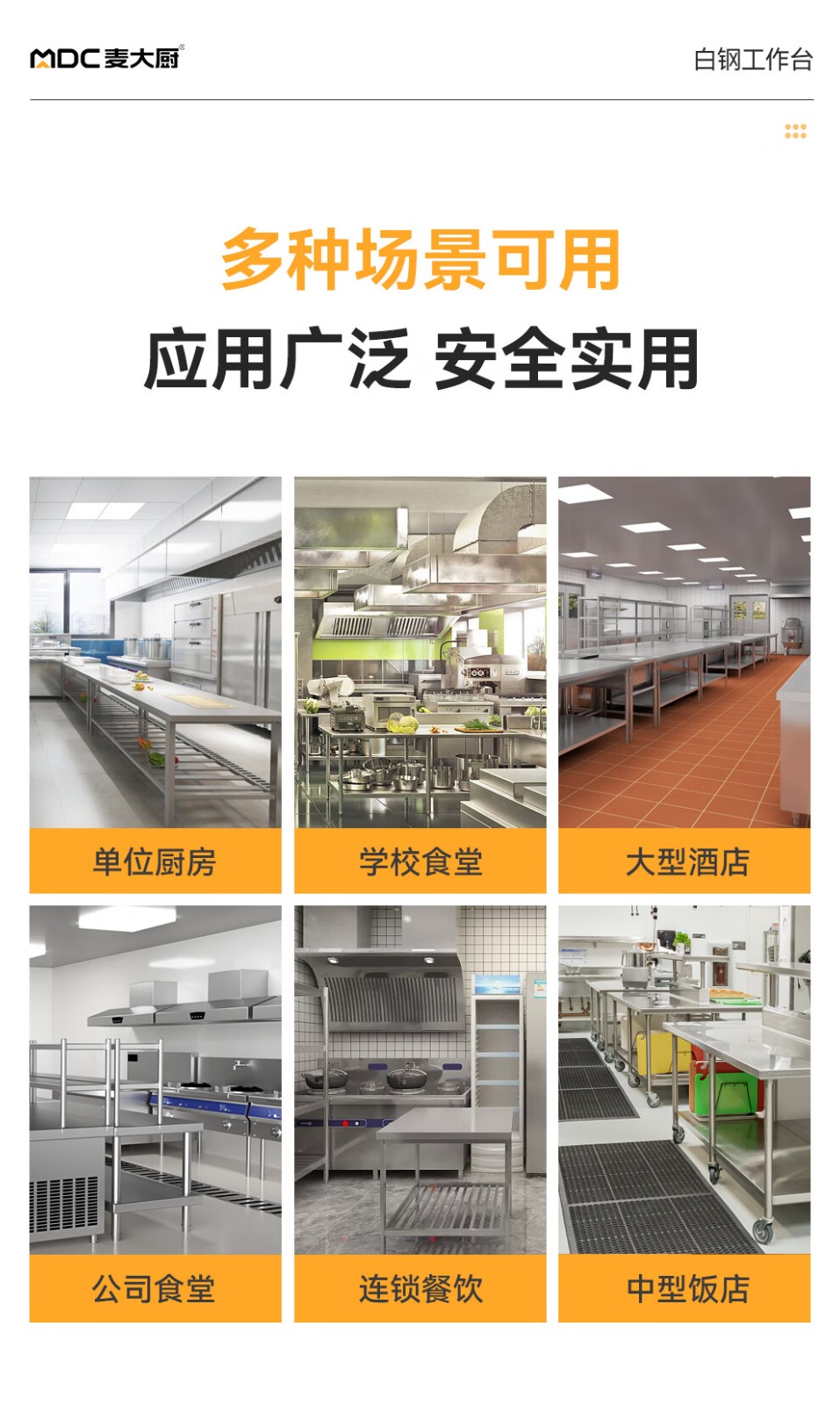 麥大廚1.0m升級款不銹鋼工作臺雙通工作臺帶靠背