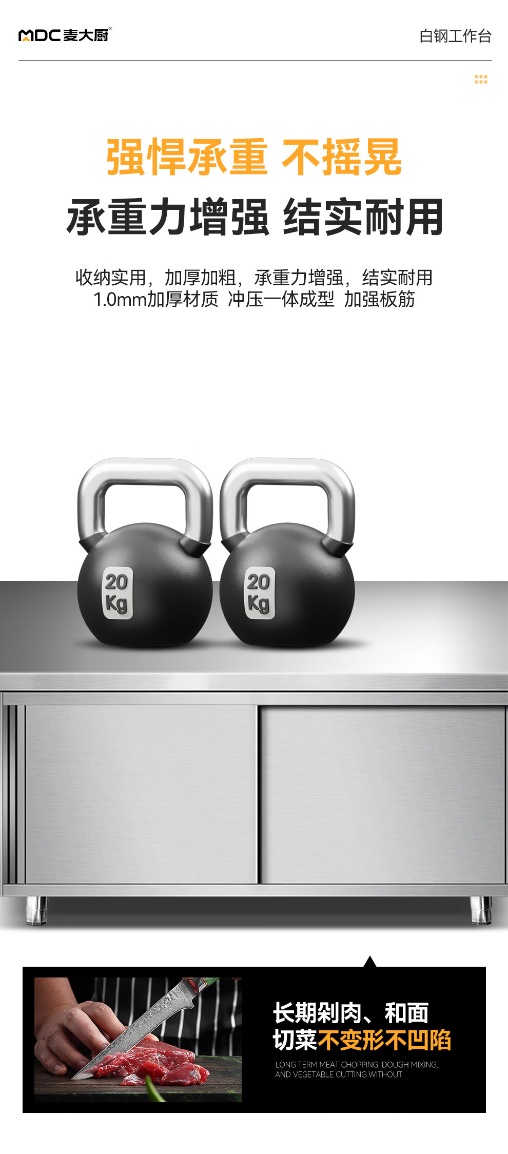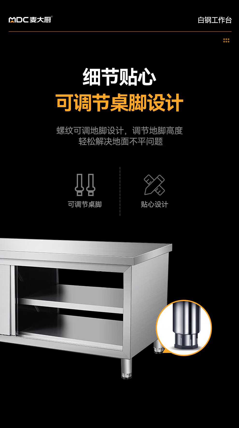 麥大廚1.8m升級款不銹鋼工作臺雙通工作臺帶靠背