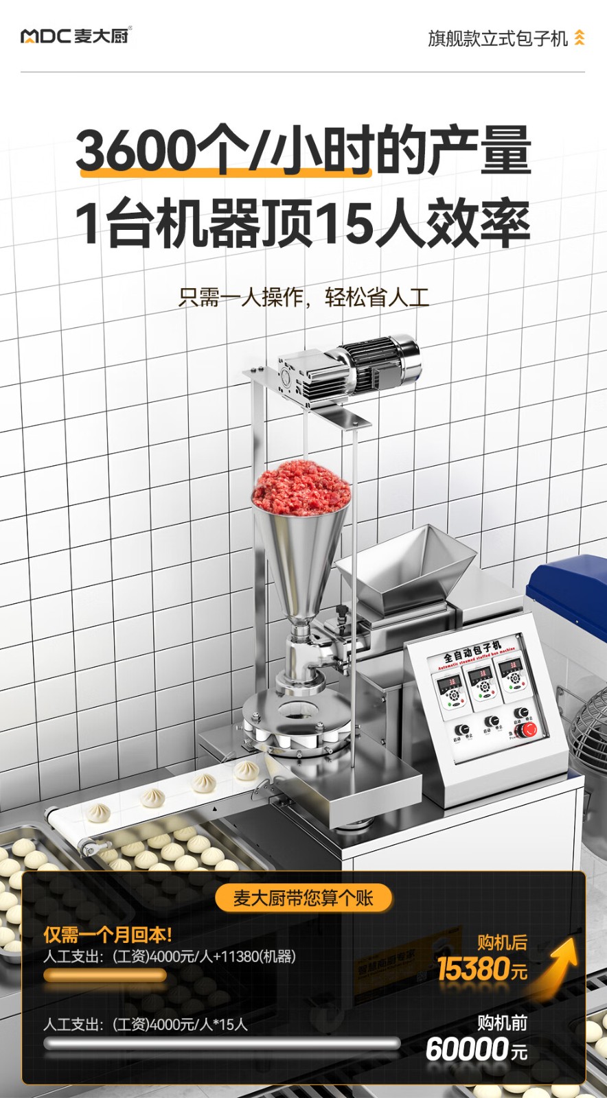 麥大廚多功能旗艦款立式單斗直供數控包子機2.75kw