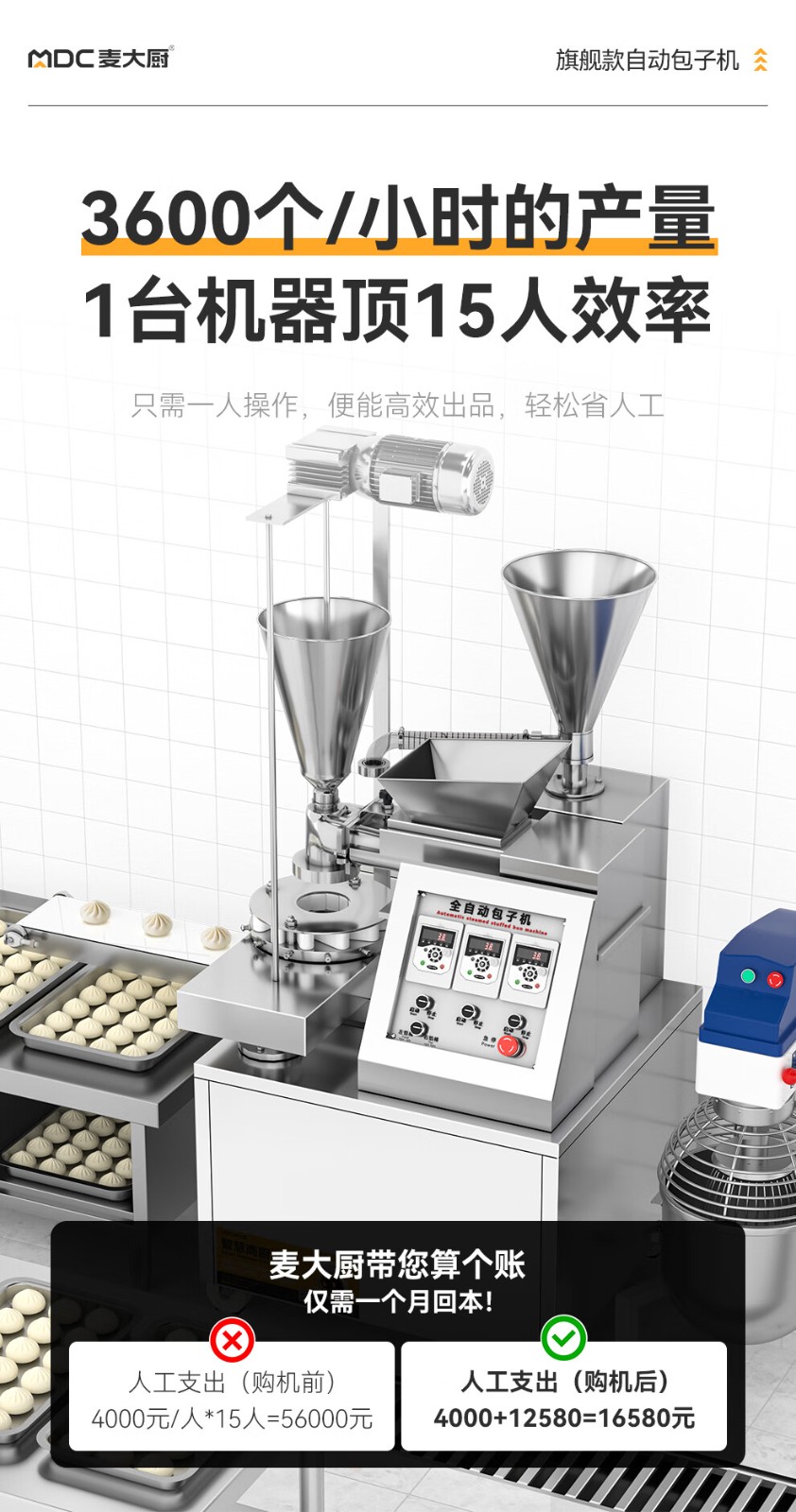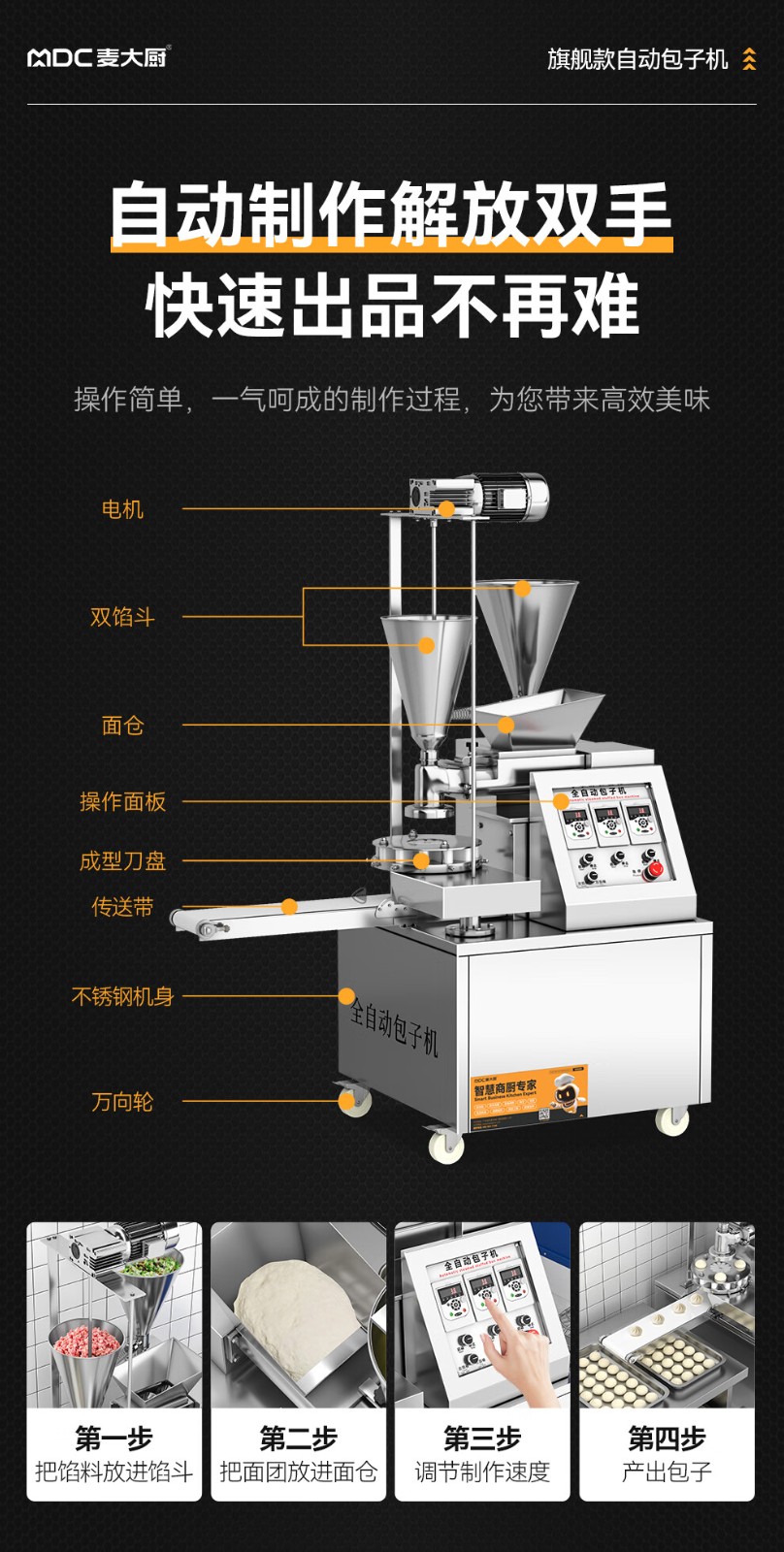 麥大廚多功能旗艦款立式雙斗直供數(shù)控包子機3.5kw