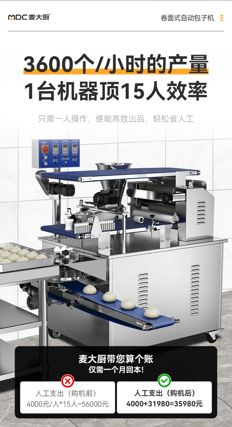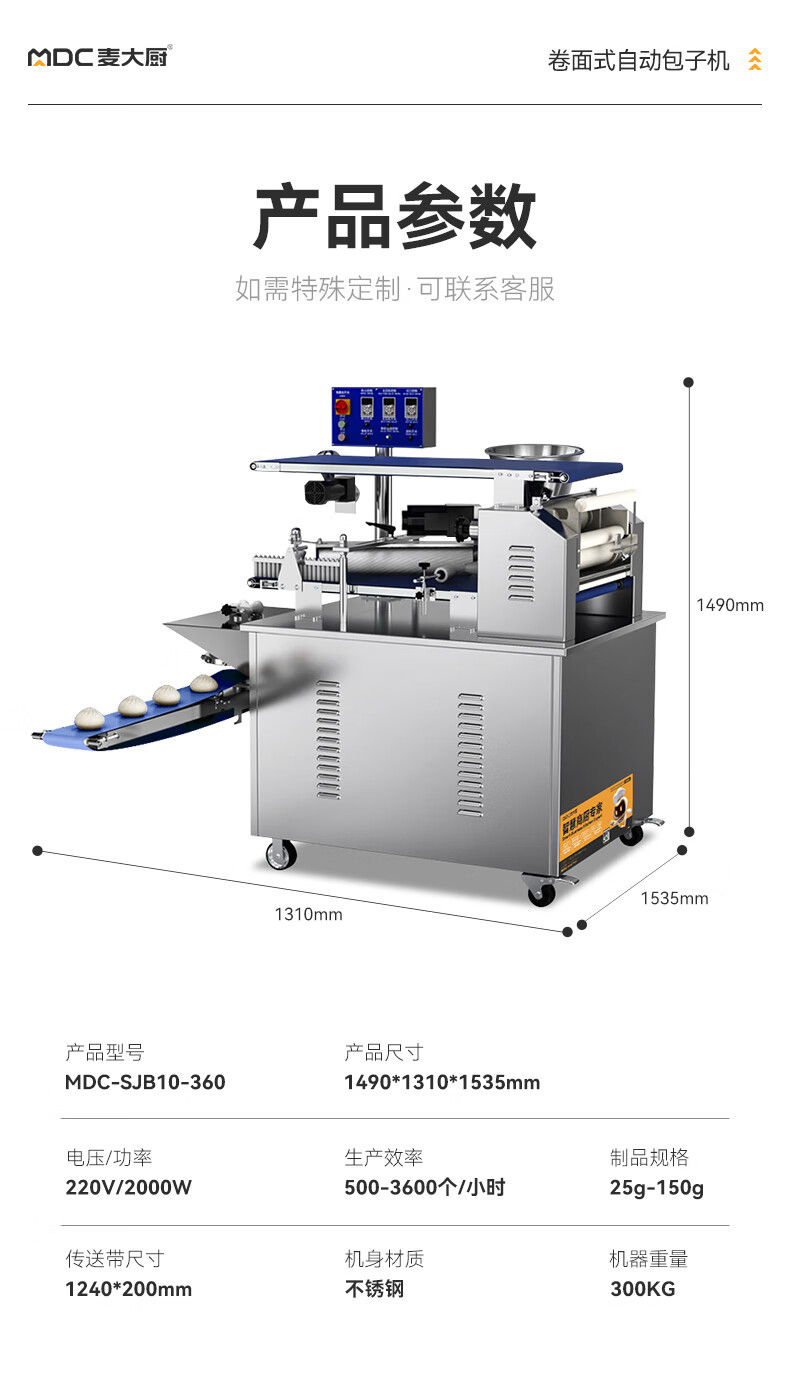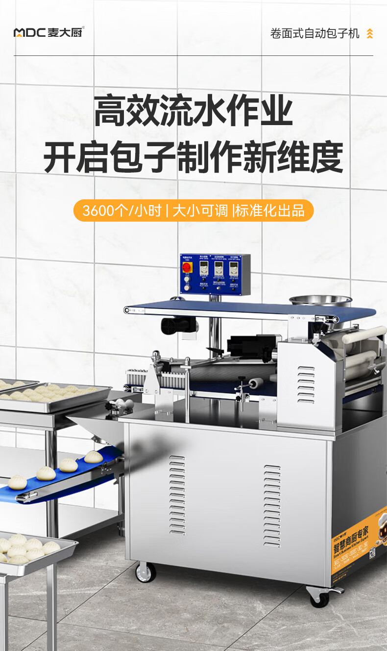 麥大廚旗艦款卷面式單斗全自動(dòng)數(shù)控包子機(jī)2.0KW