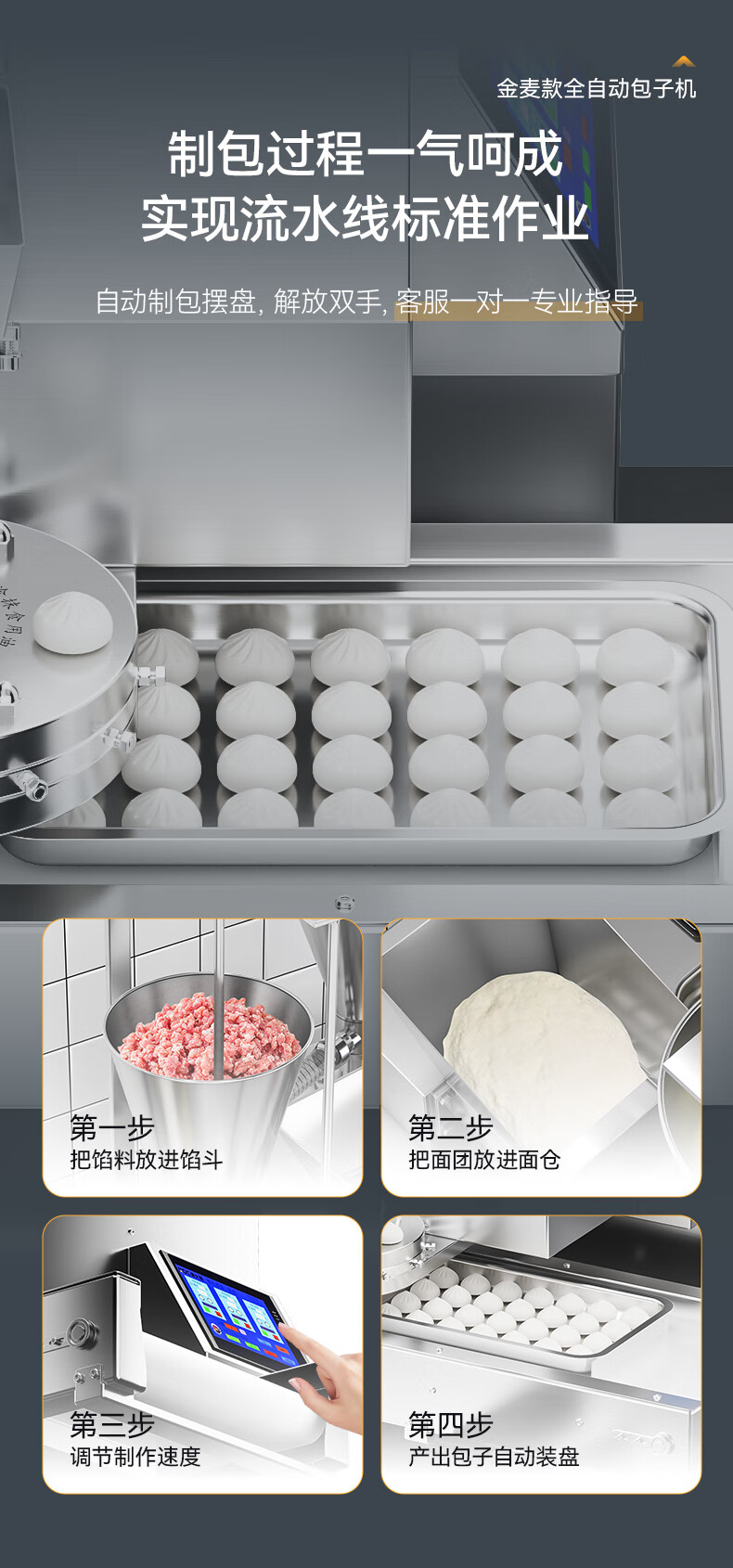 首頁(yè) > 商廚產(chǎn)品 > 食品機(jī) > 包子機(jī) >麥大廚金麥款1.5KW商用立式全自動(dòng)數(shù)控包子機(jī)