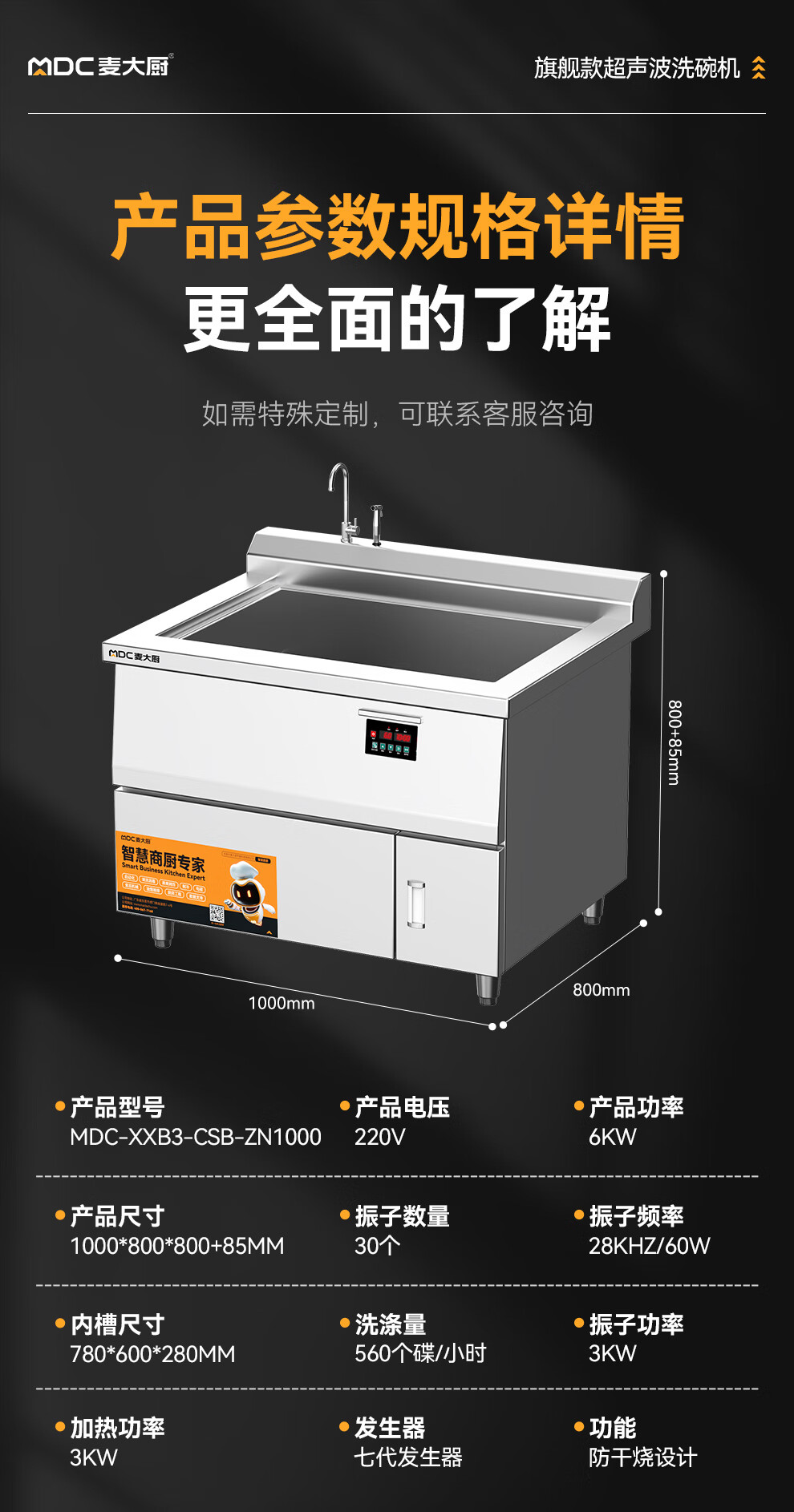 麥大廚旗艦款1.0米單池超聲波商用洗碗機