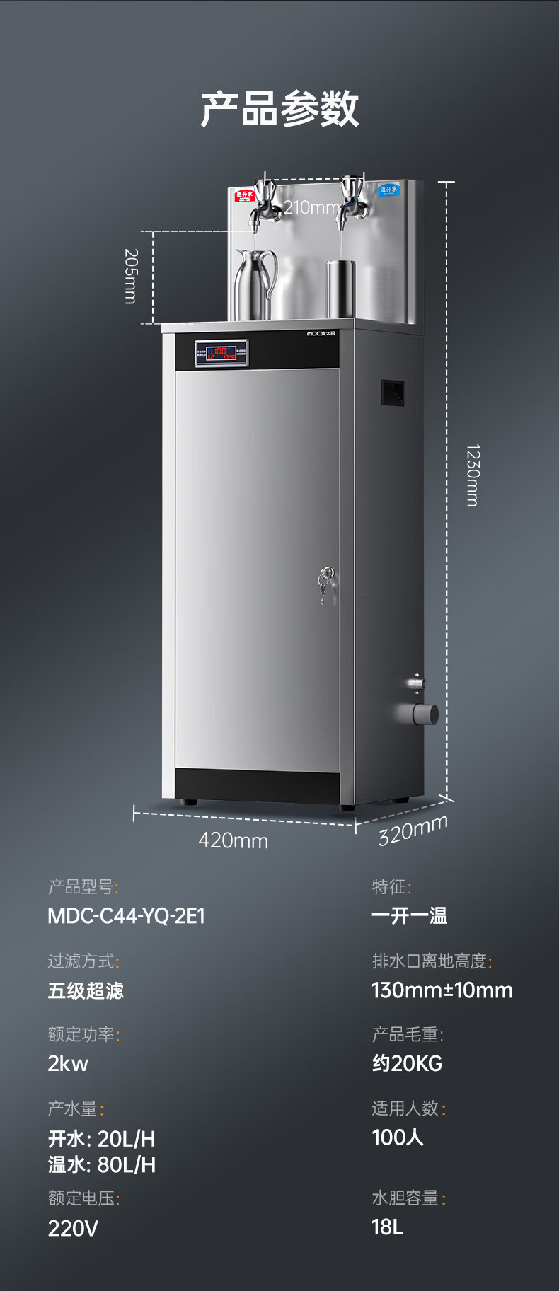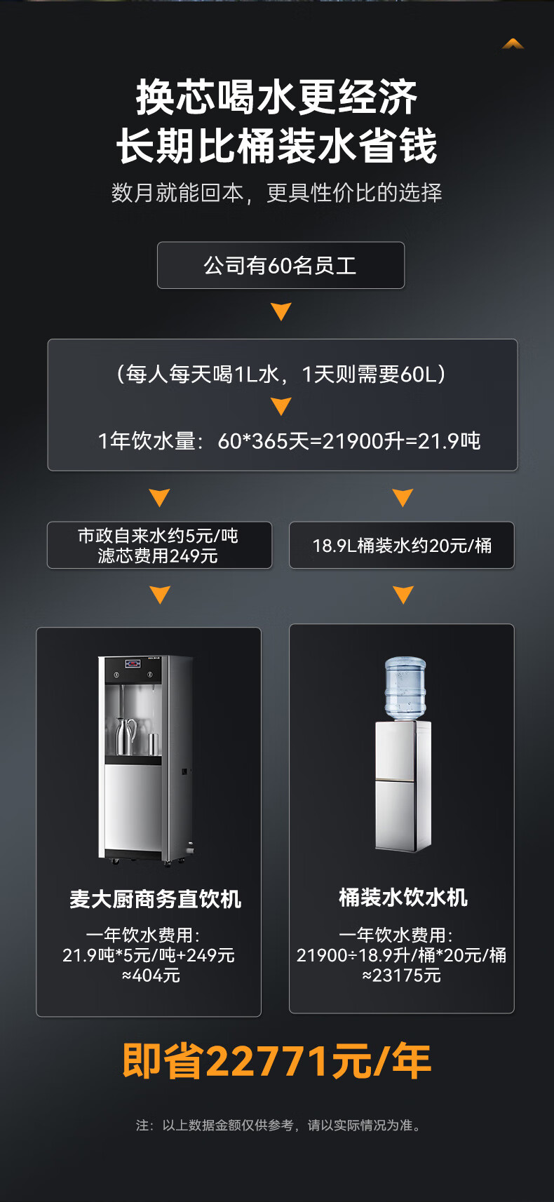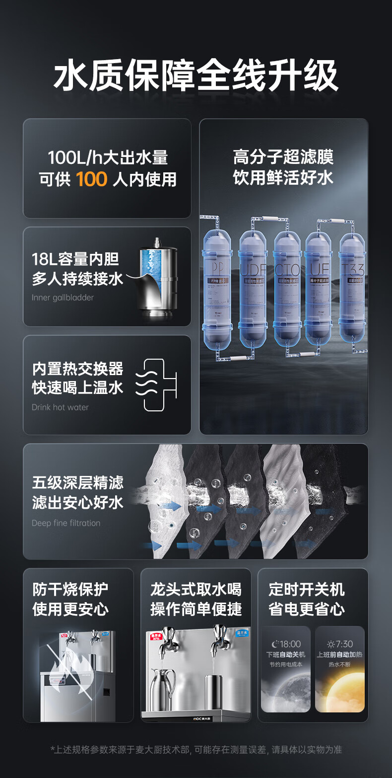 麥大廚2KW高背龍頭飲水機一開一溫快接五級超濾直飲機