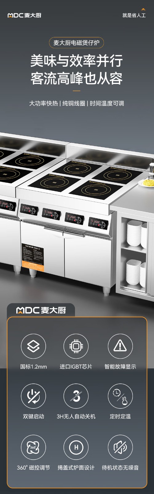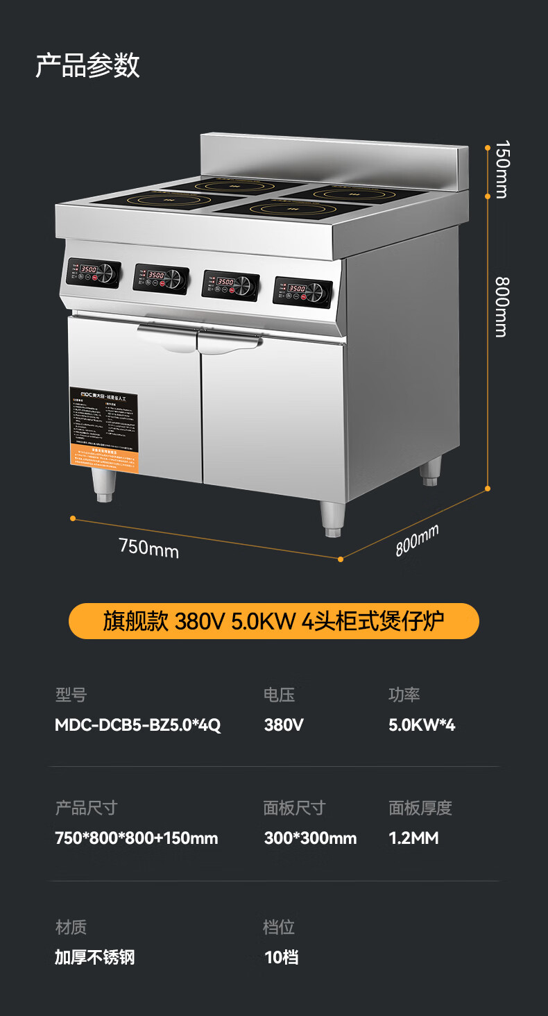 麥大廚商用多頭電磁爐旗艦款四頭柜式煲仔爐5KW