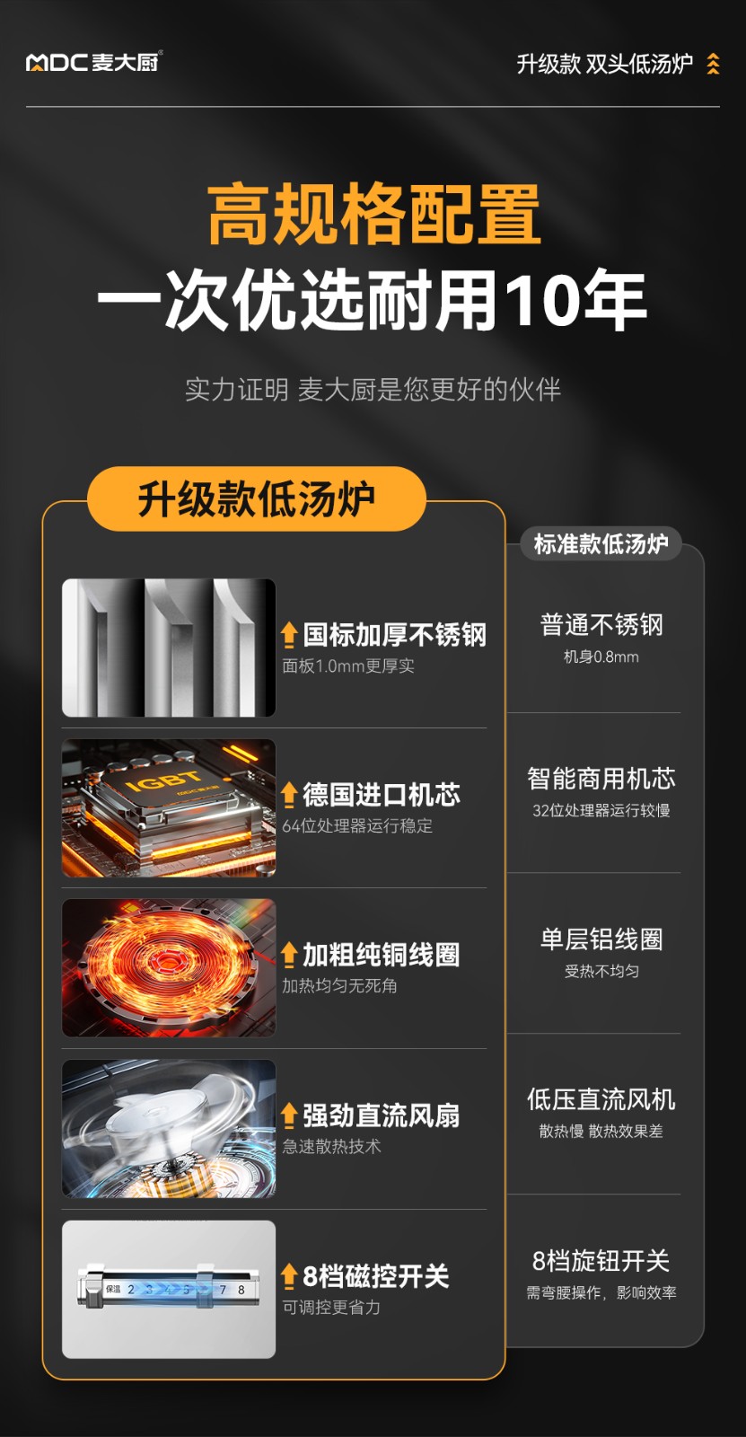 麥大廚商用升級款雙頭低湯爐矮仔爐15KW