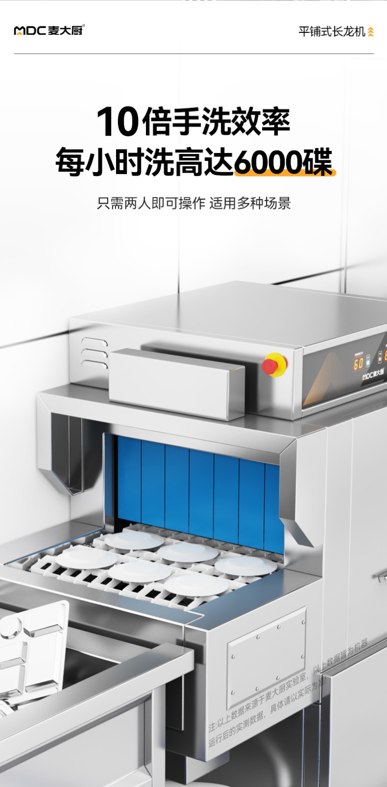 麥大廚4.4m豪華款平放式雙缸雙噴淋單烘干酒店餐廳洗碗機