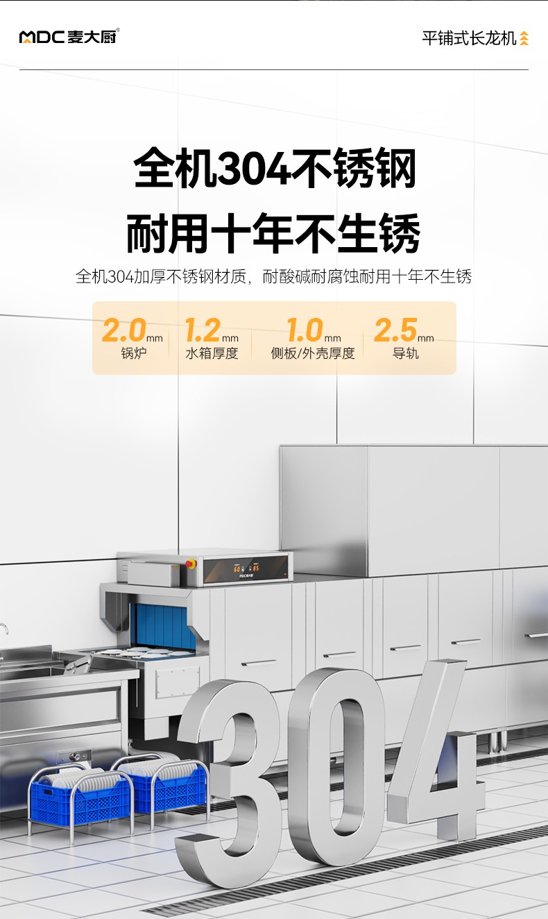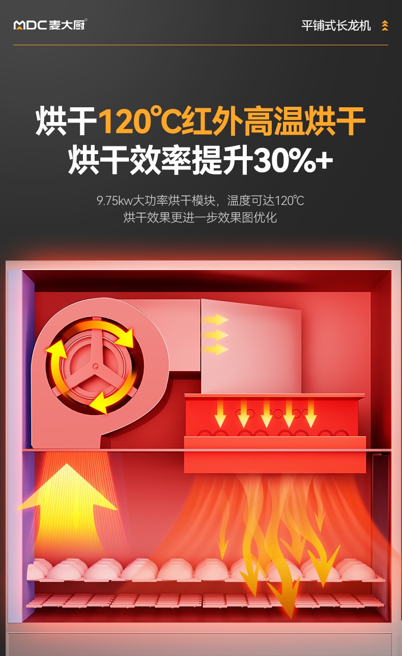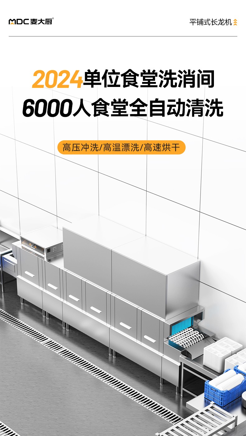 麥大廚4.9m豪華款平放式單缸雙噴淋雙烘干商用大型洗碗機(jī)