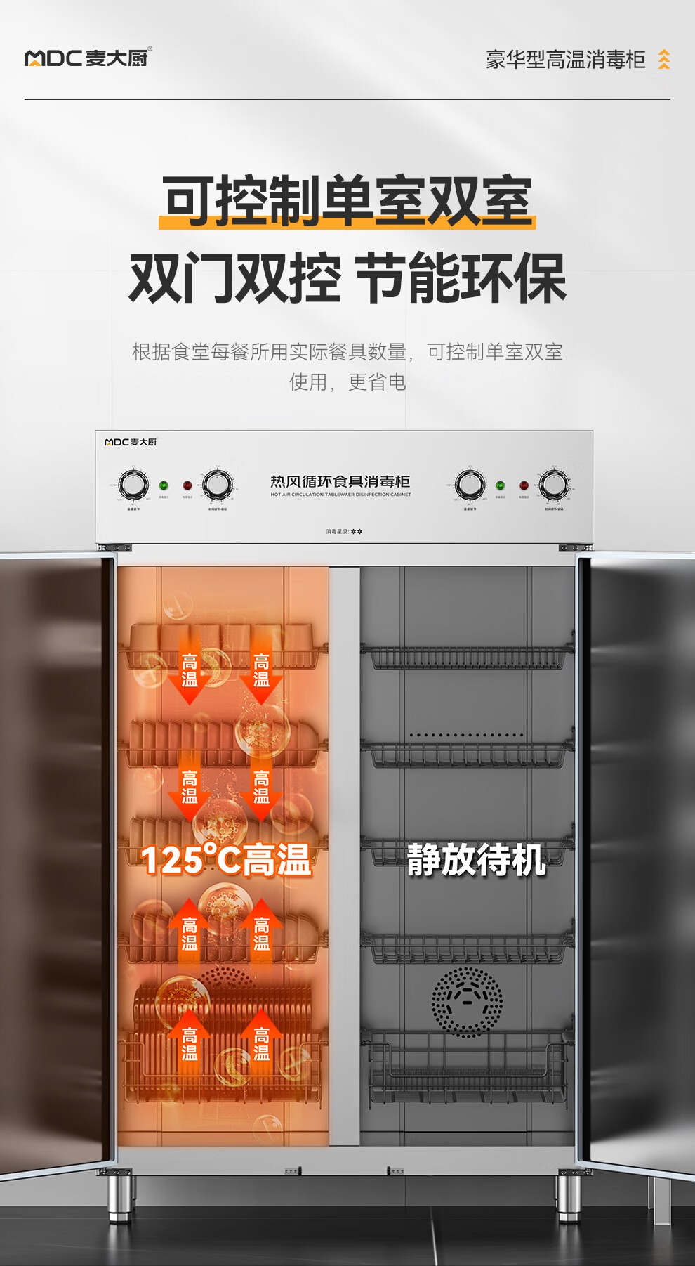 麥大廚豪華旋鈕型雙門雙控5層熱風循環高溫消毒柜1870W