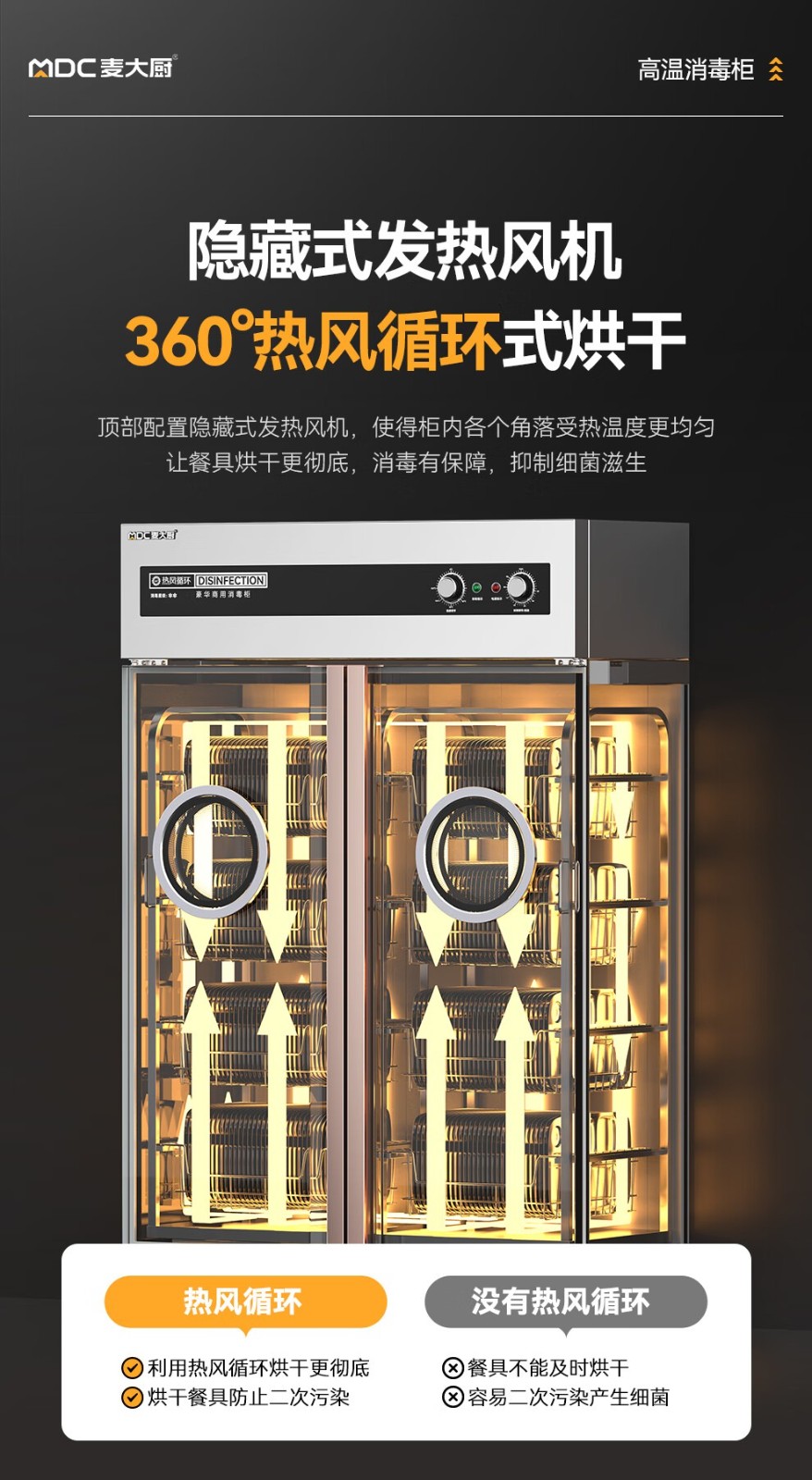 首頁 > 商廚產(chǎn)品 > 消毒柜 > 高溫消毒柜 >麥大廚豪華旋鈕型雙門單控4層熱風(fēng)循環(huán)高溫消毒柜3.5KW