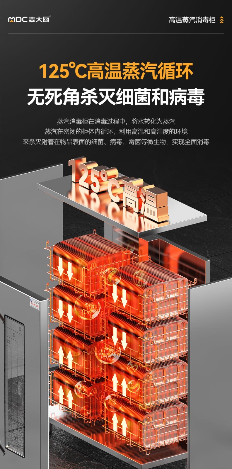 麥大廚智能電腦型雙門單控4層熱風(fēng)循環(huán)高溫蒸汽消毒柜7KW