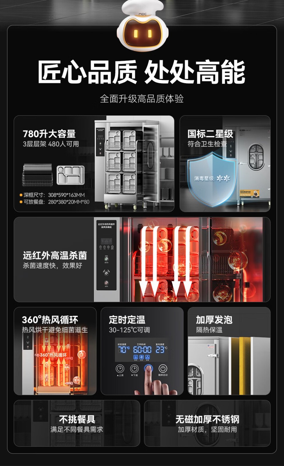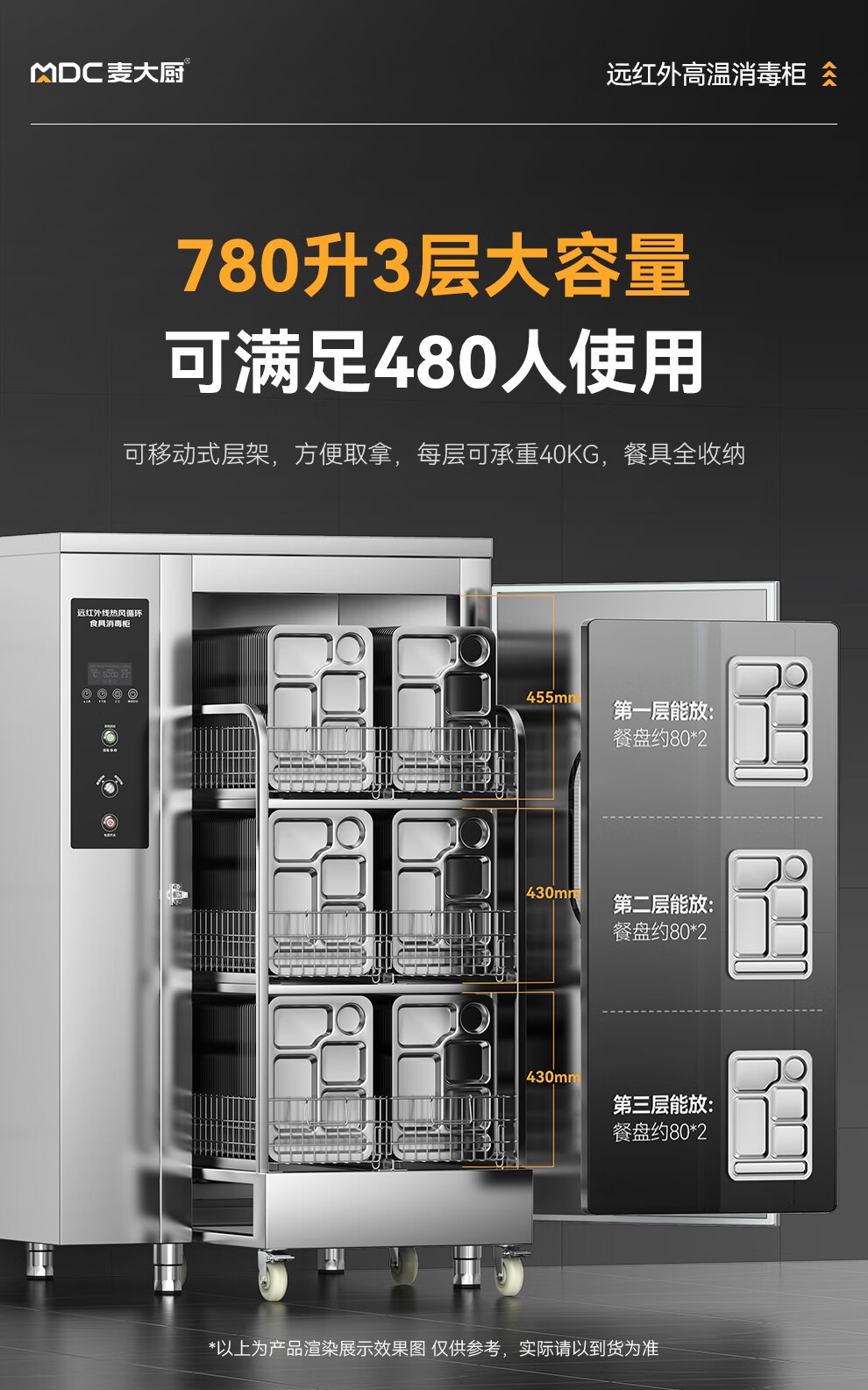 層架承重:40kg/層 - 更多MDC商用消毒柜規格咨詢在線客服