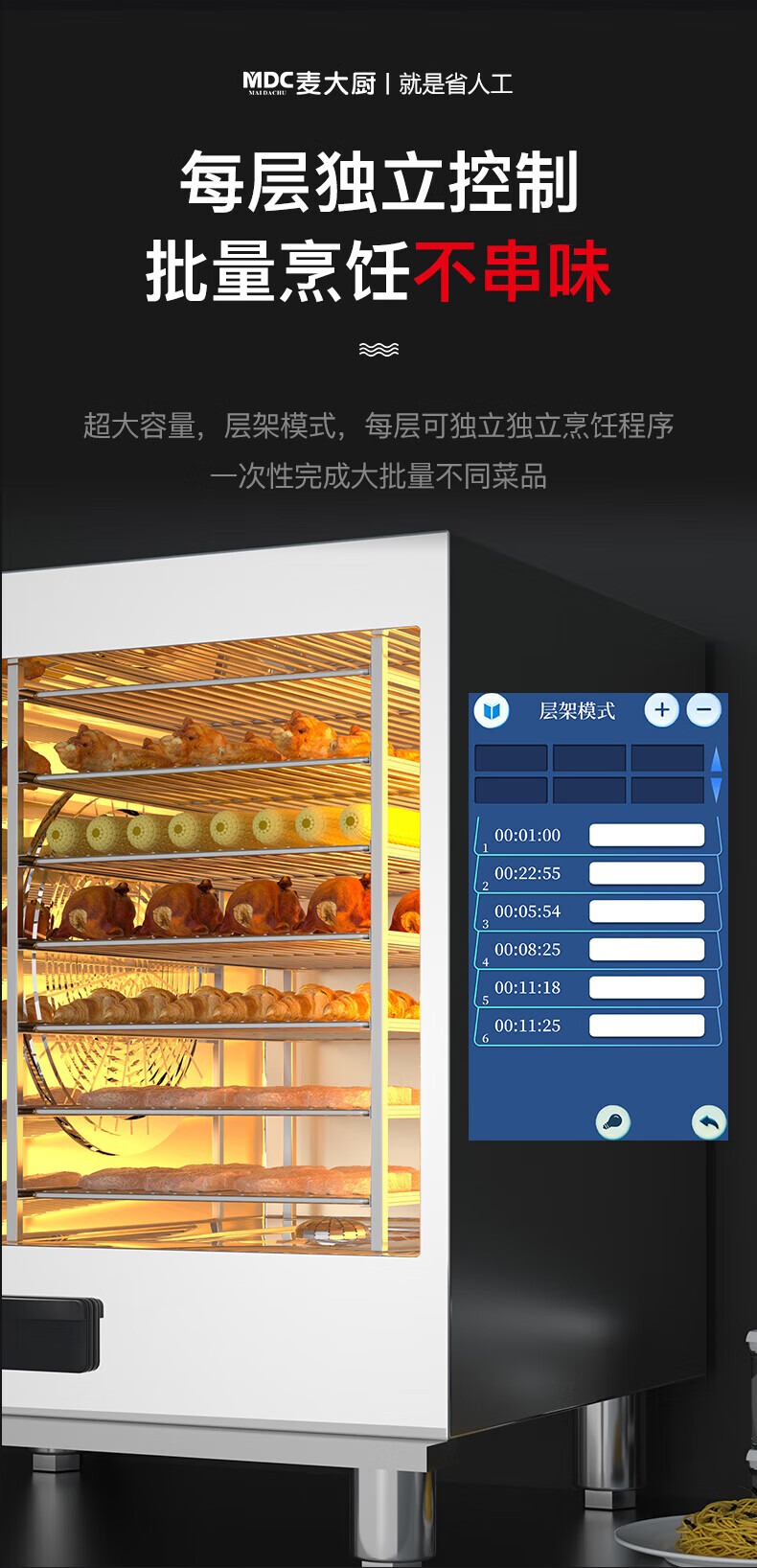 麥大廚380v尊享款12.3kw觸屏式六層萬(wàn)能蒸烤箱