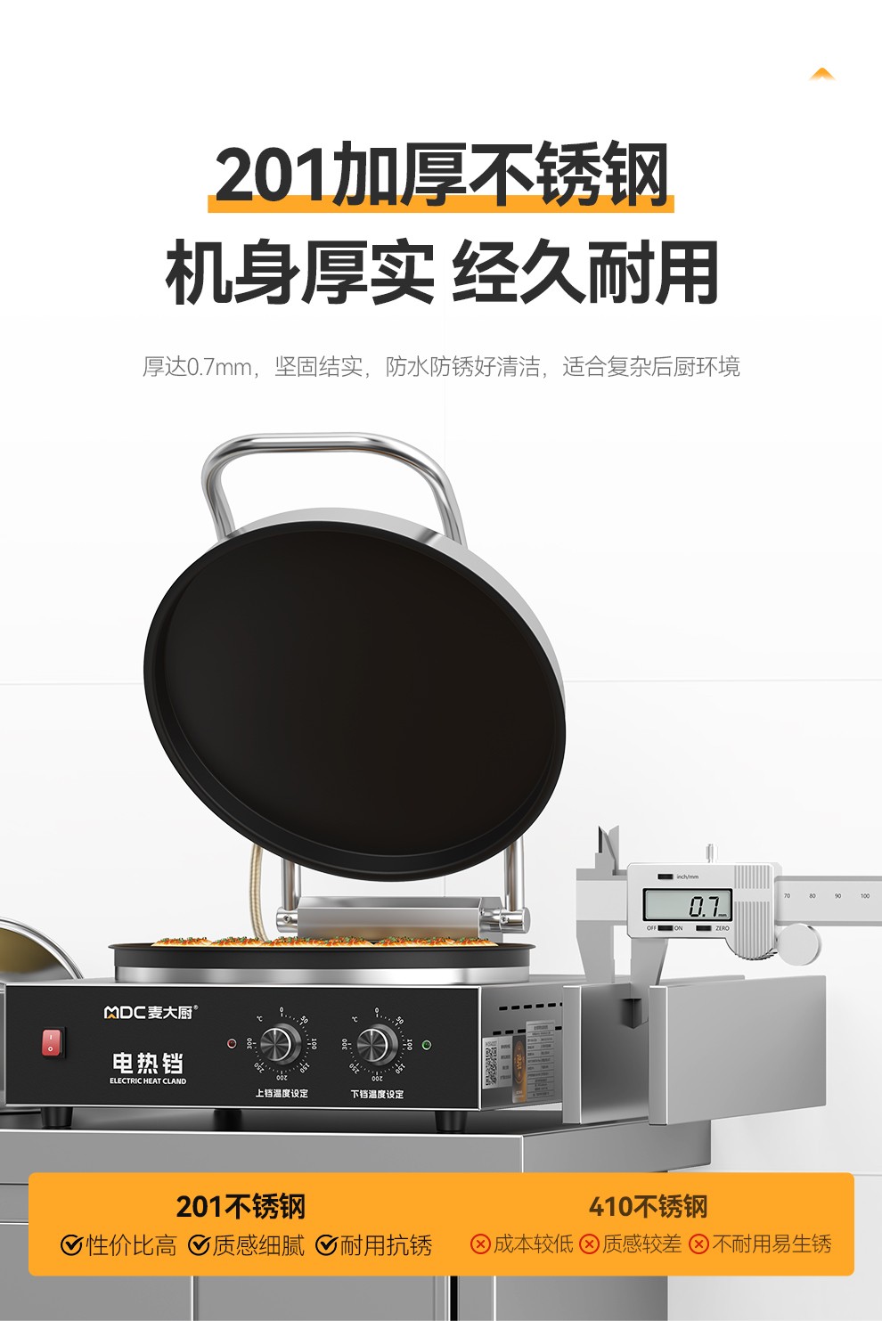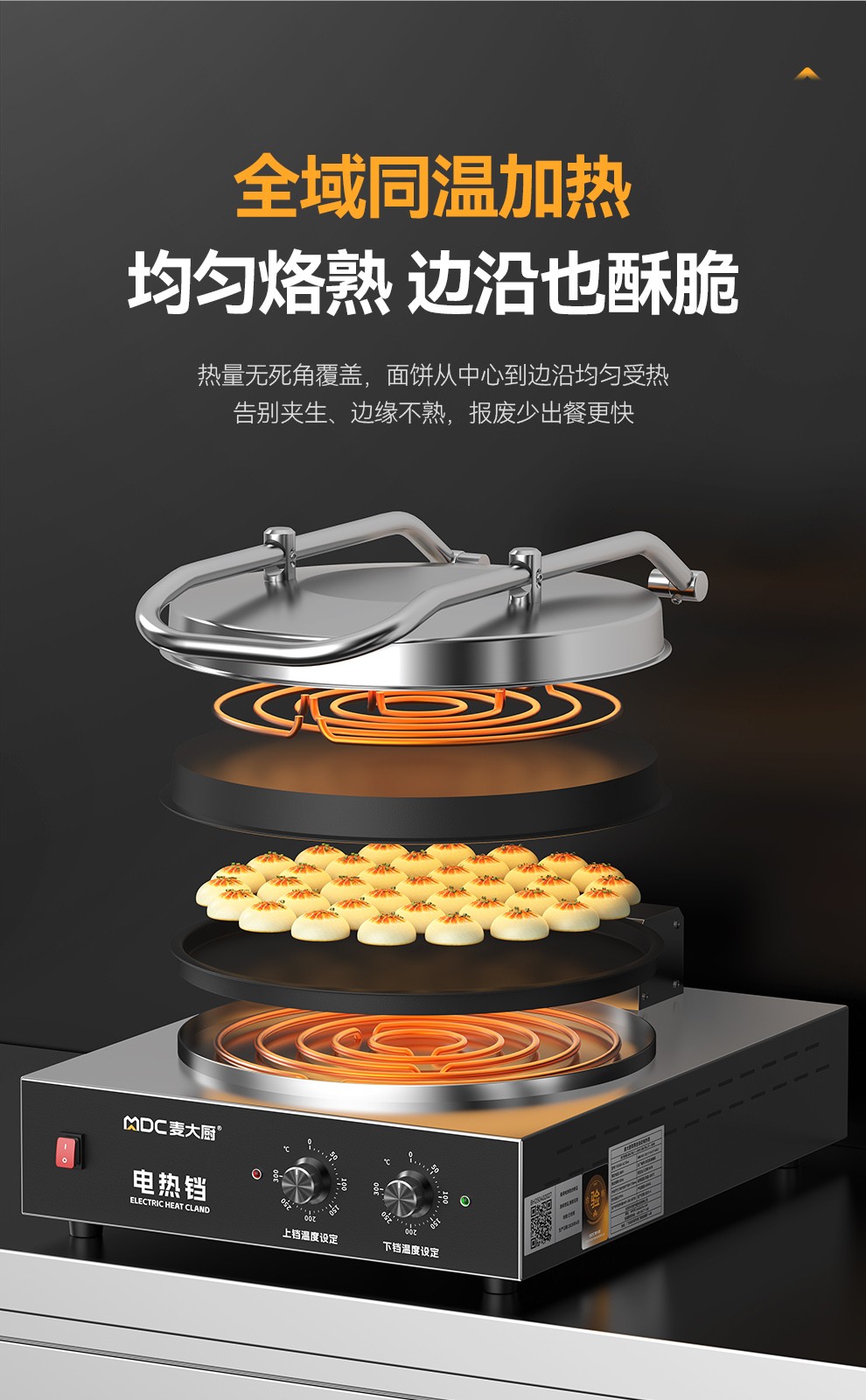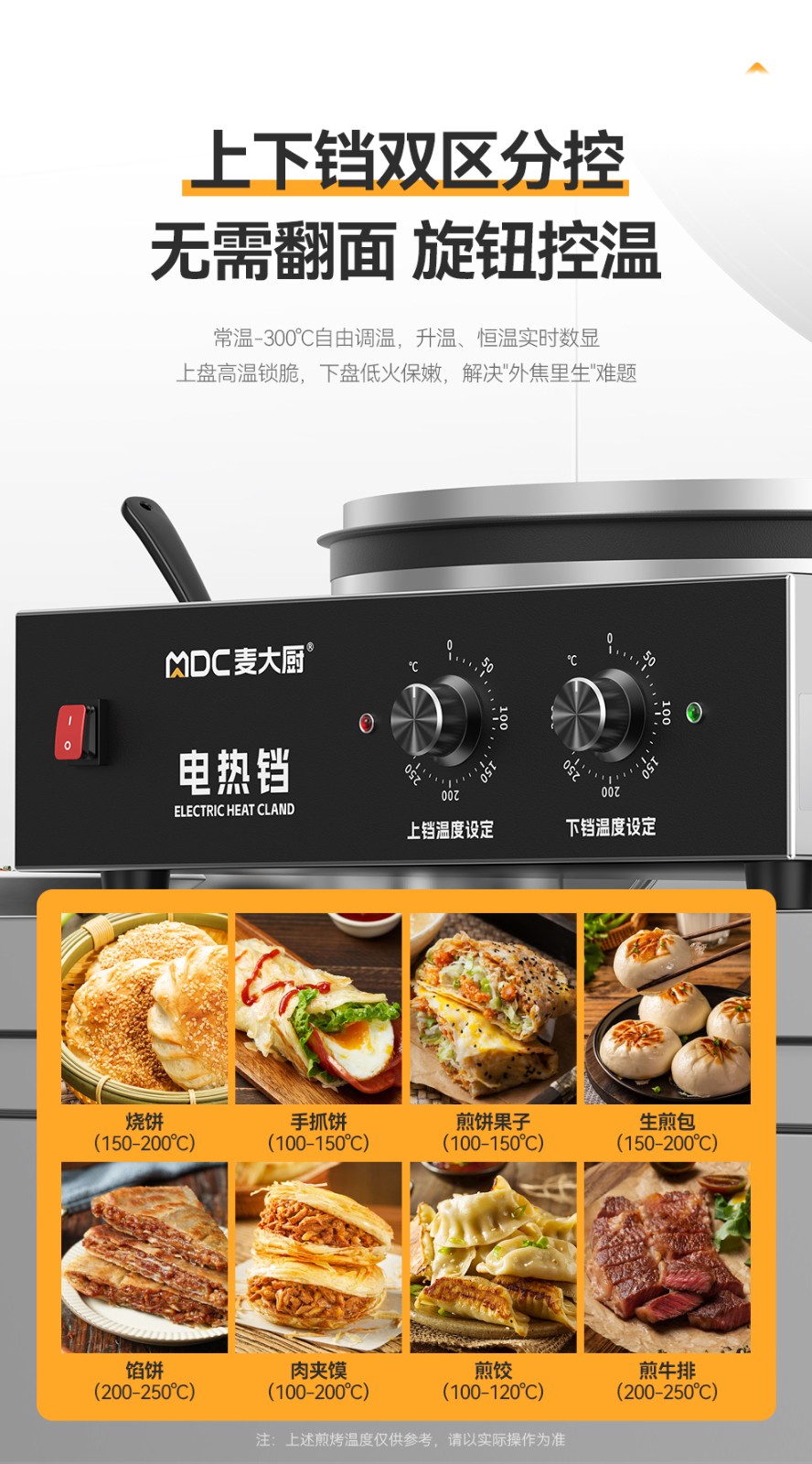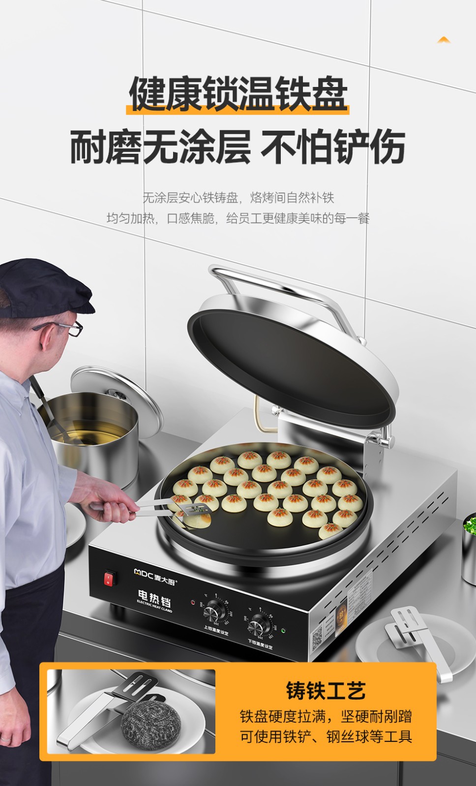 麥大廚臺(tái)式旋鈕款鐵鍋商用電餅鐺大型雙面加熱